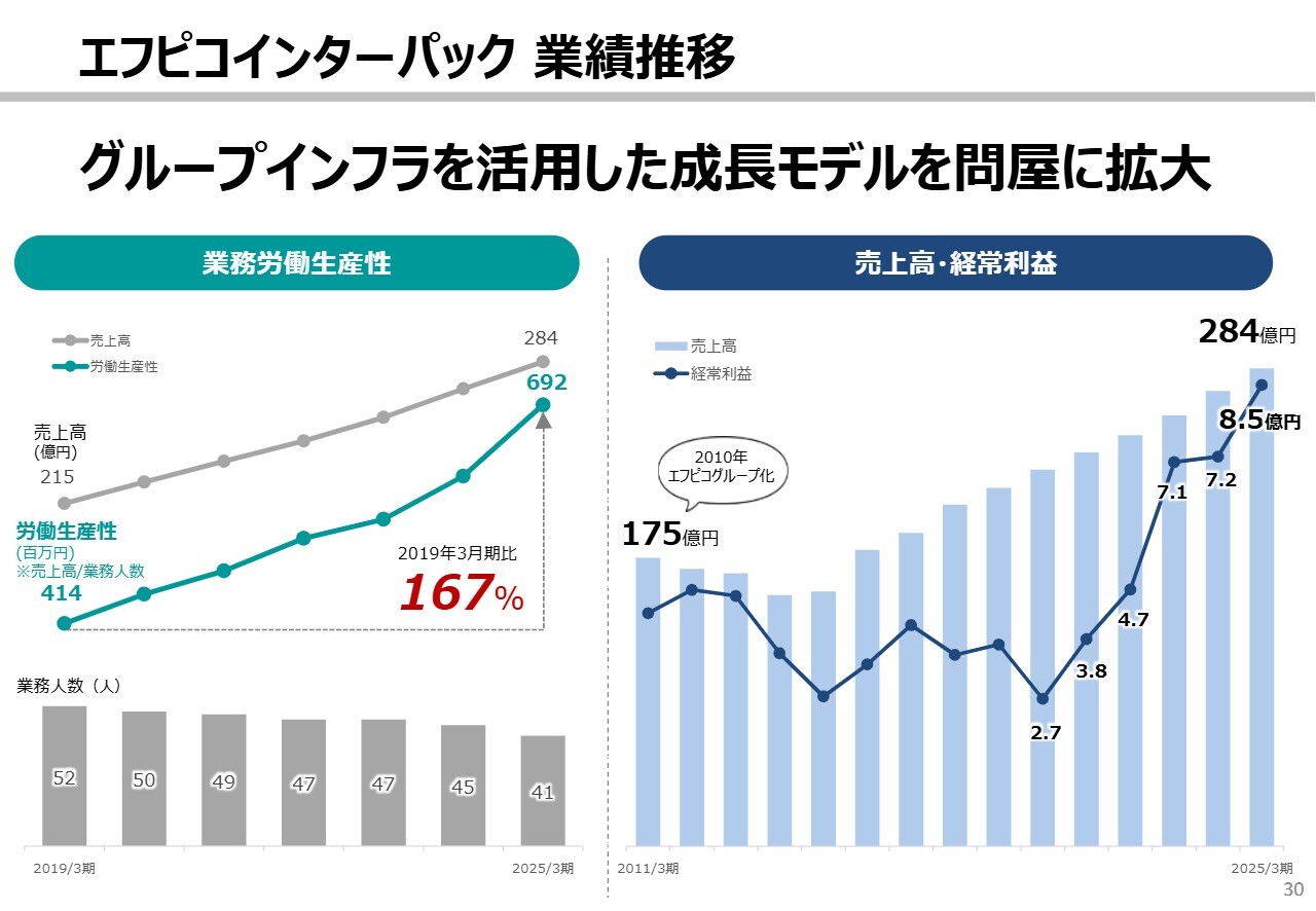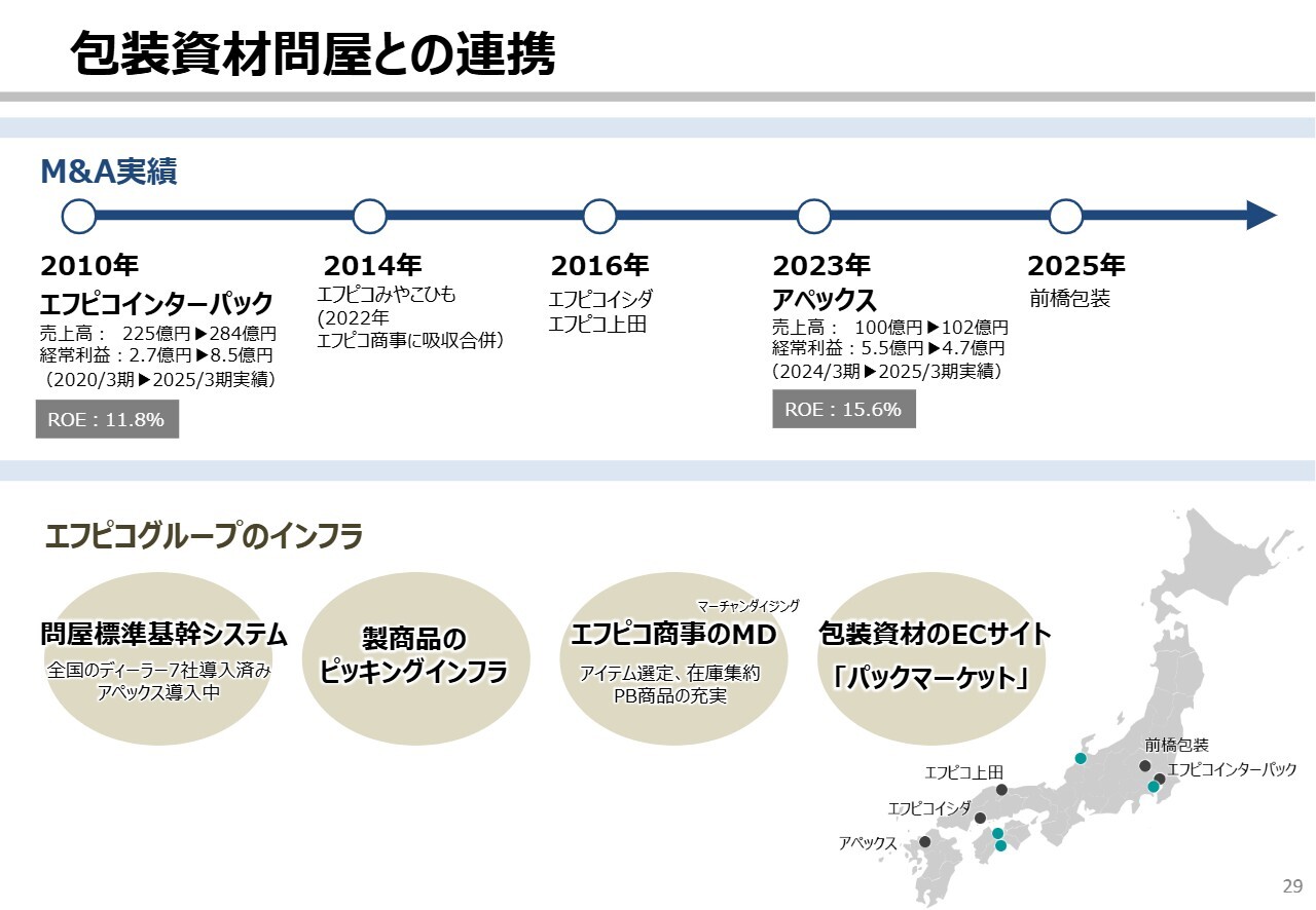 私どもは現在、包装ディーラーを5社グループに加えています。エフピコインターパックから始まり、エフピコイシダ、エフピコ上田、アペックスとグループ化を進めました。