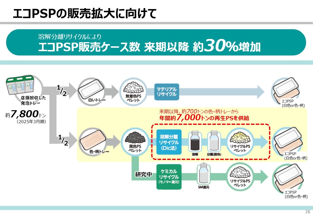 回収したカラートレーのインキをDIC社の技術で脱墨することにより、来年には約7,000トンのエコ原料が供給される予定です。