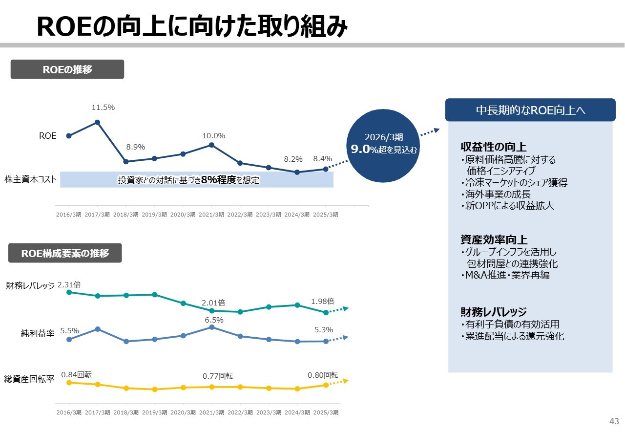 ROEは若干下がっていましたが、今期はおそらく9パーセント台に戻ると考えています。