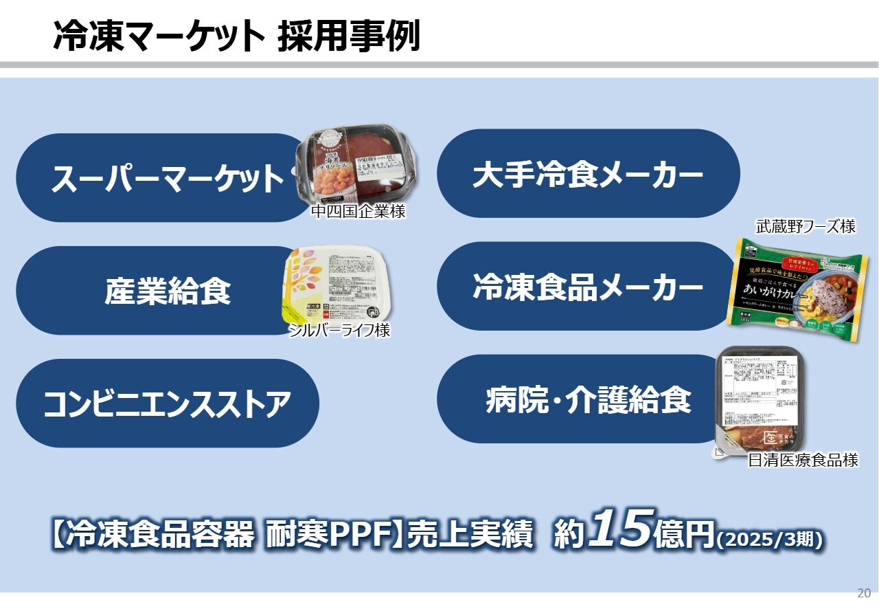 足元では、スーパーマーケットを中心に惣菜の需要回復の兆しが見られます。また、お年寄り世帯の増加により、冷凍・病院介護給食などの新しいマーケットで採用事例が出現しています。