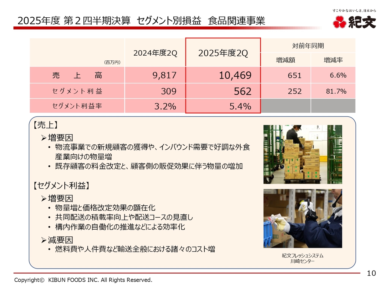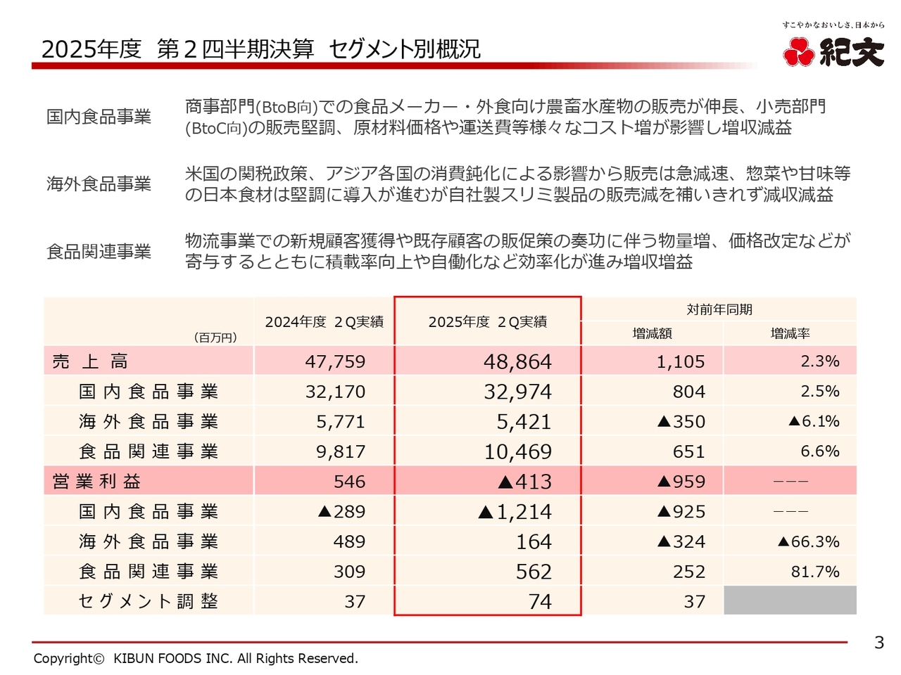 2025年度 第2四半期決算 セグメント別損益 食品関連事業