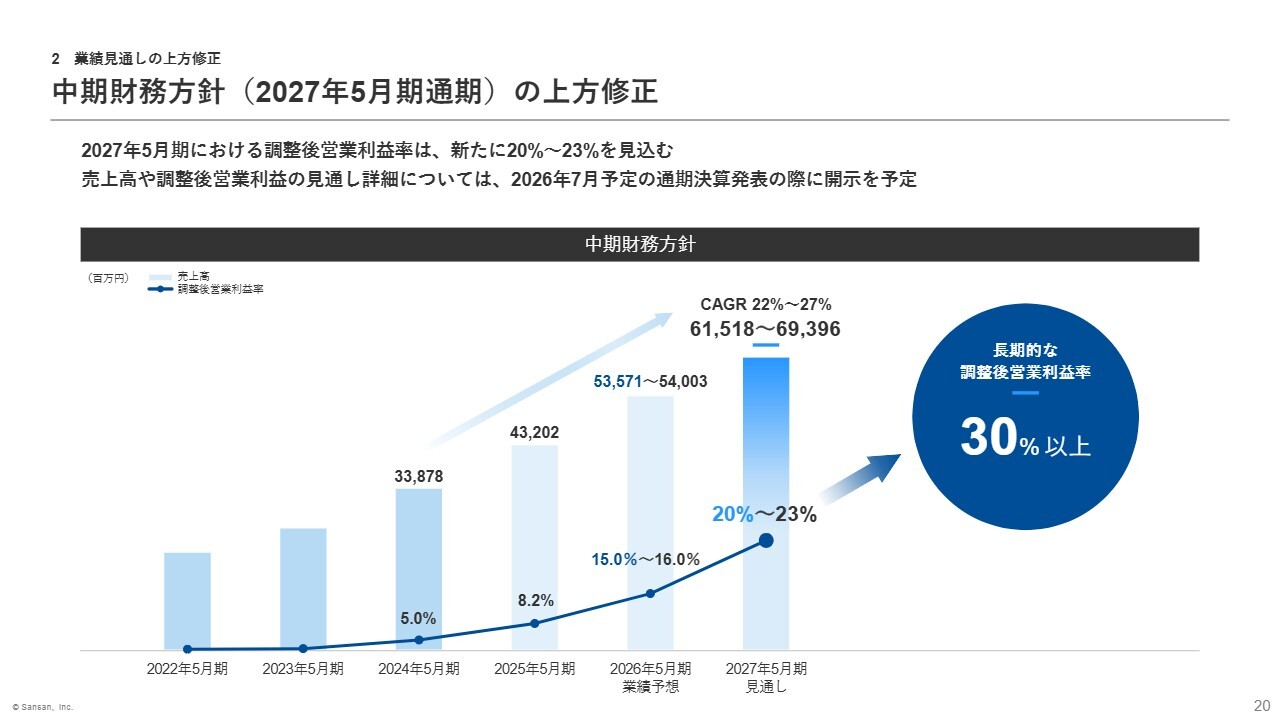 2026年5月期通期業績予想及び中期財務方針(2027年5月期通期)の上方修正