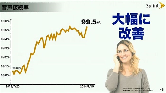こちらもLTEの接続率が大幅に改善しております。どれほどの状況かといいますと、まず最初にスプリントはネットワークが繋がらない、しかもどんどんパケットの接続率が落ちている、という状況でした。