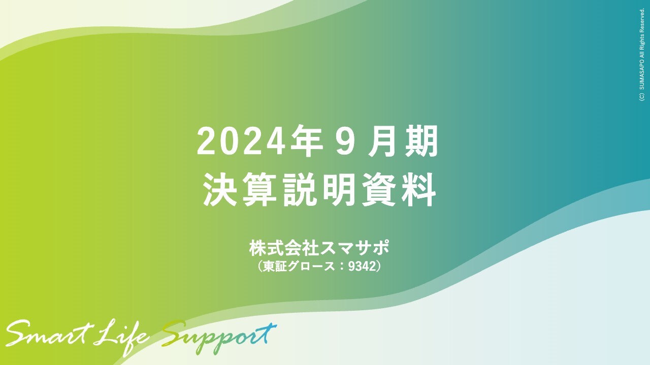 小田慎三氏(以下、小田):みなさま、こんにちは。株式会社スマサポ代表取締役社長CEOの小田慎三です。2024年9月期決算説明会を開始します。よろしくお願いします。