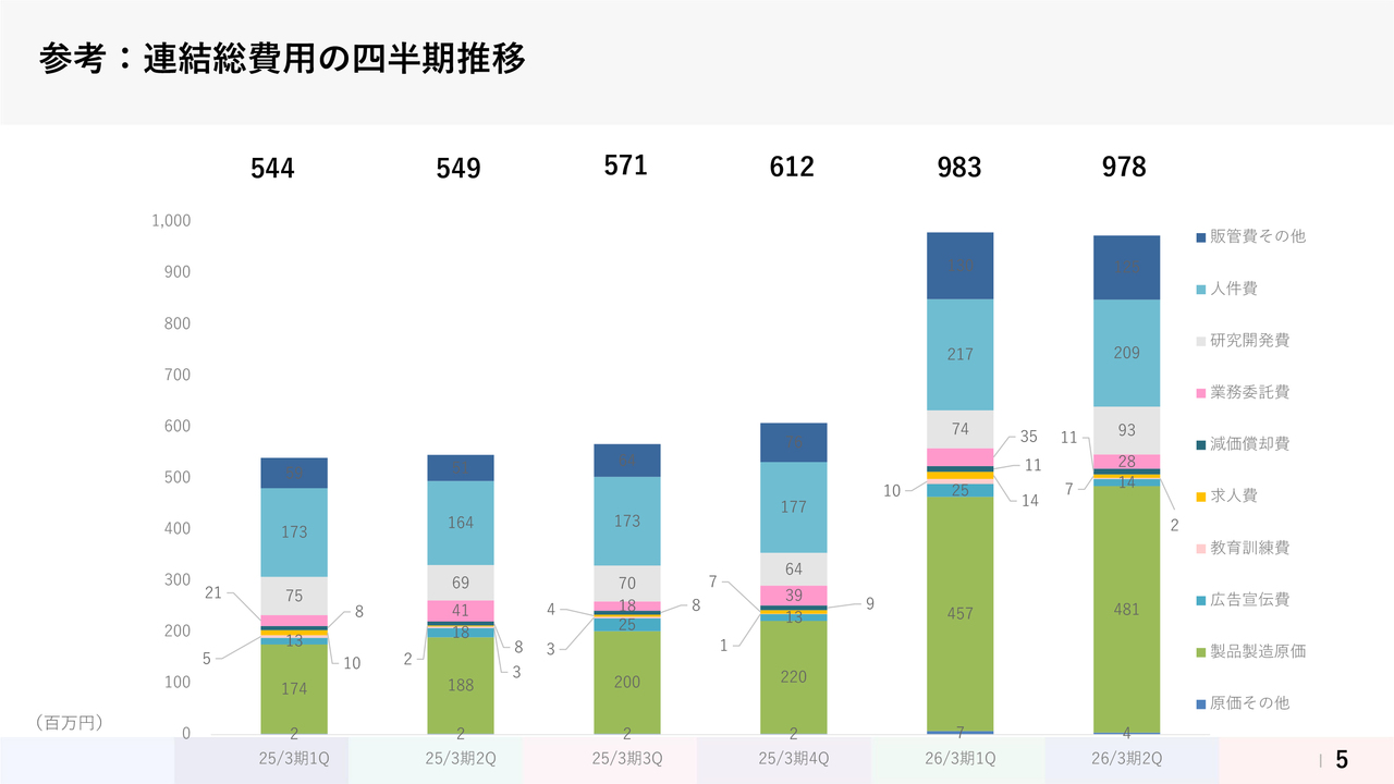 これらの要因により、原価全体の絶対額が増加しています。このように費用面では増加が見られるものの、これは将来の成長に向けた戦略的投資であり、今後の収益性向上に寄与すると考えています。