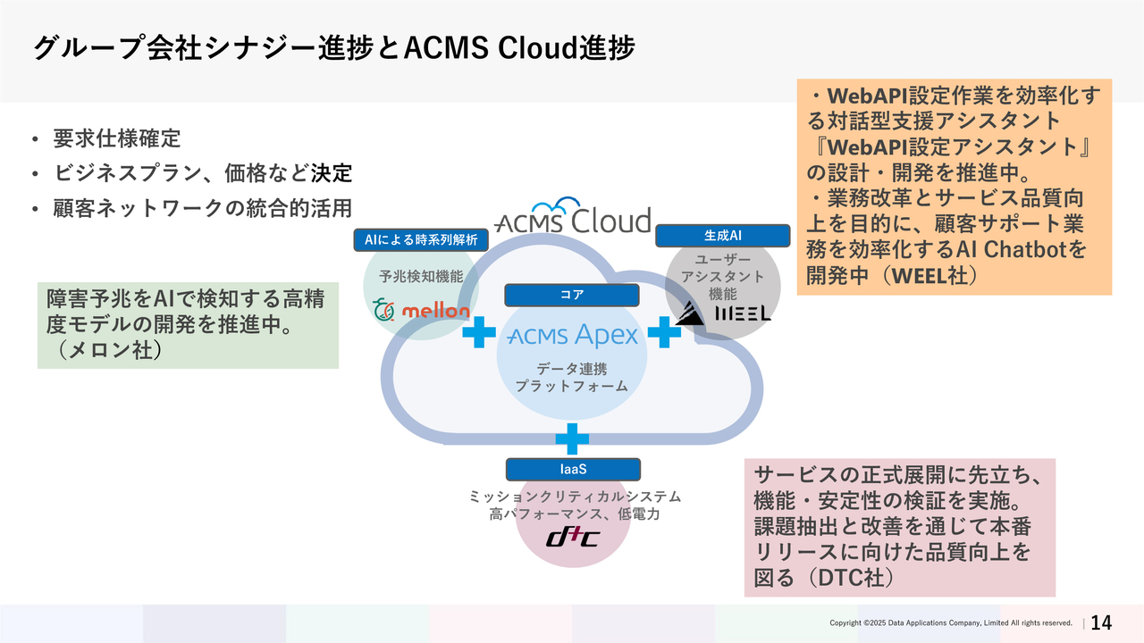 まず、目下の連携として、当社が現在開発を進めているクラウド型データ連携プラットフォーム「ACMS Cloud」の構築およびサービス化に向けて密接に関わっており、グループ全体での価値創出を目指した取り組みを進めています。