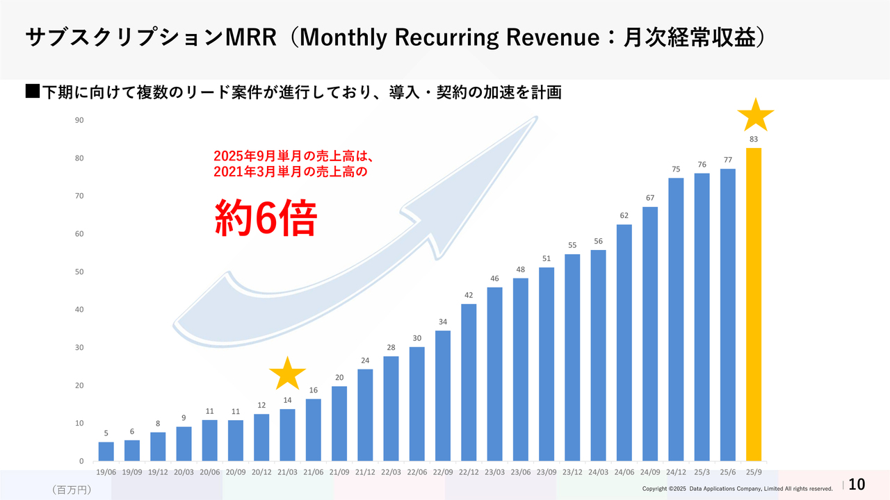 MRRは8,000万円を超えています。大型案件が少ない状況下でも、着実に受注実績を積み重ねてきました。下期に向けて複数のリードが進行中であり、導入および契約を加速させる計画を立てており、受注に向けて尽力していきます。