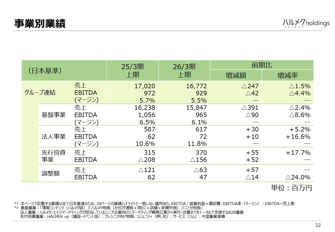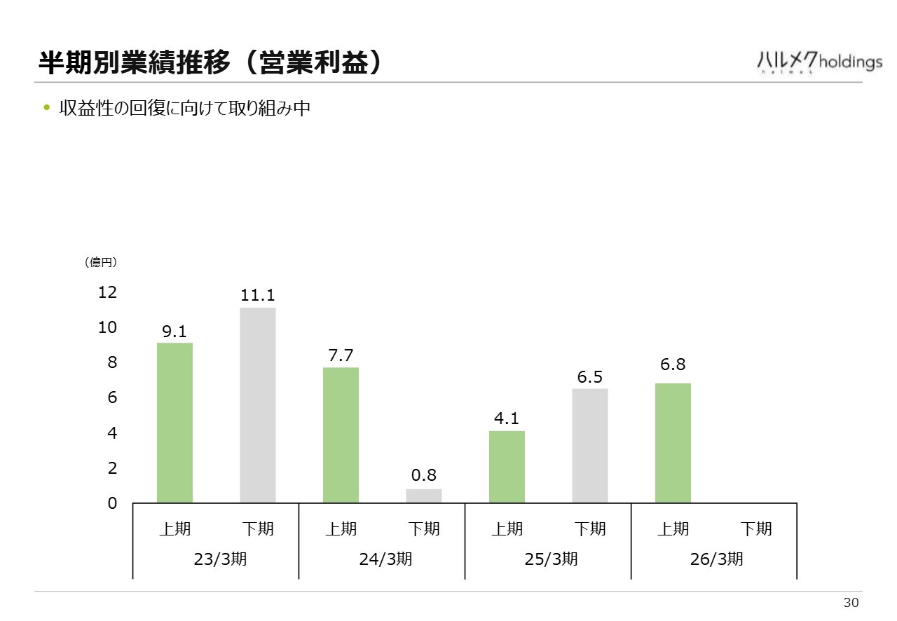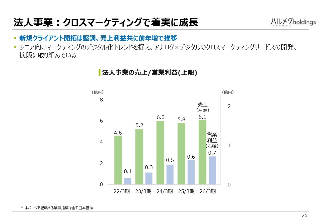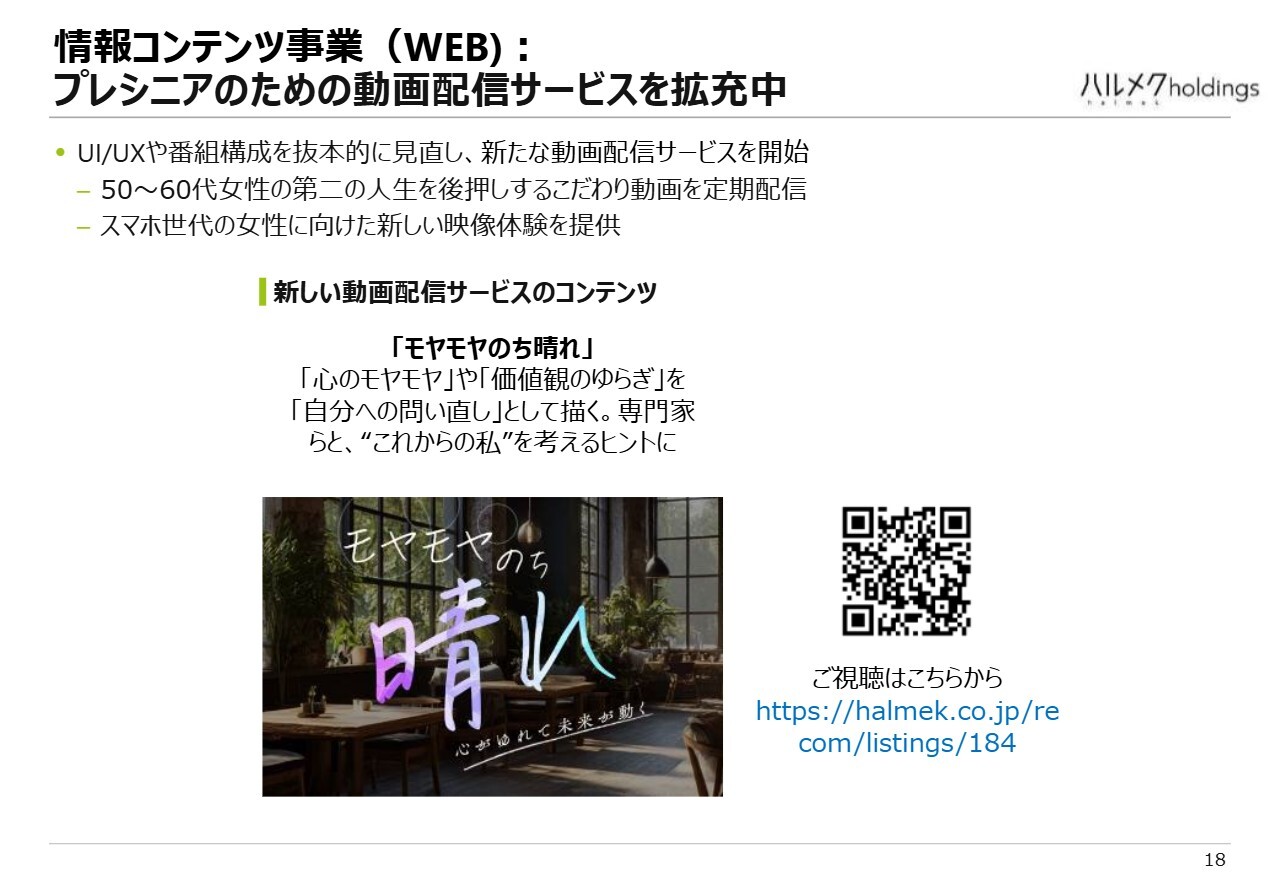 また、先ほど触れたプレシニア層や、デジタルに慣れた方々を対象とした情報コンテンツ「HALMEK up」の提供に向けた先行投資を継続しており、現在もそのプロセスを進めています。