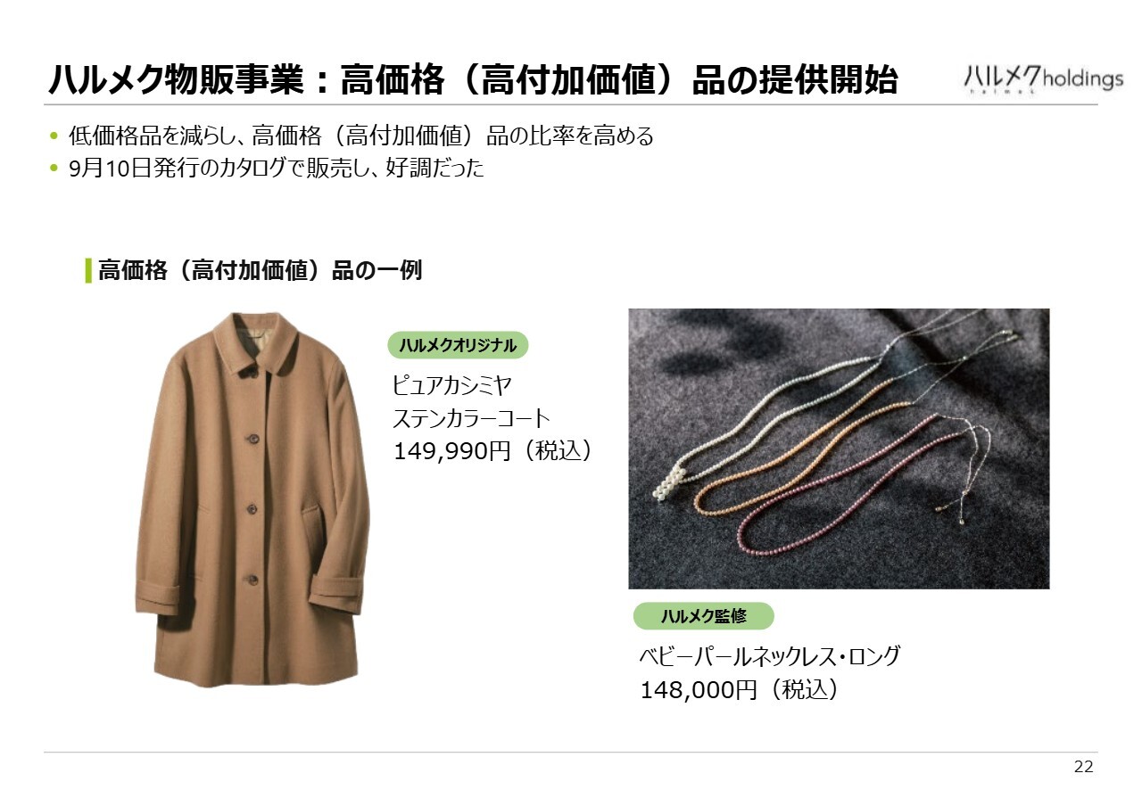 高付加価値品の提供については、すでに試験的に開始しています。スライドに掲載した商品は、9月のカタログで販売したものです。