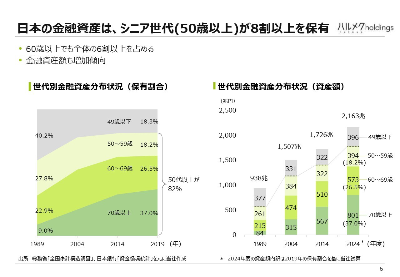 市場環境についてです。当社のお客さまが保有されている金融資産は、50歳以上の世代を基準に見ると、全体の8割以上を占めています。この点は、これまでもさまざまな場でお話ししてきました。