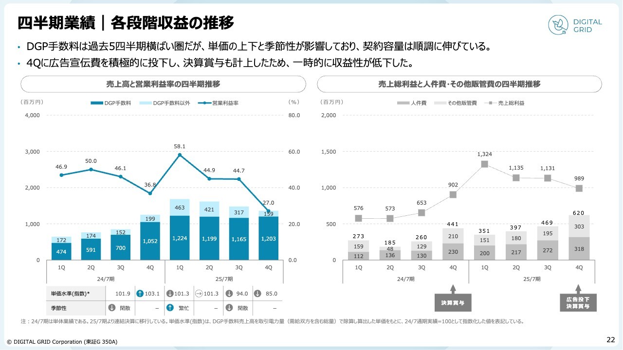 他方で、2022年と比べると電力価格はやや落ち着きを見せ、競争環境も従来の状況に戻りつつあります。後ほど詳細をご説明しますが、特に第3四半期以降は単価が安定し、第4四半期のプラットフォーム利用料は前年同期比14.4パーセントの増加となっています。