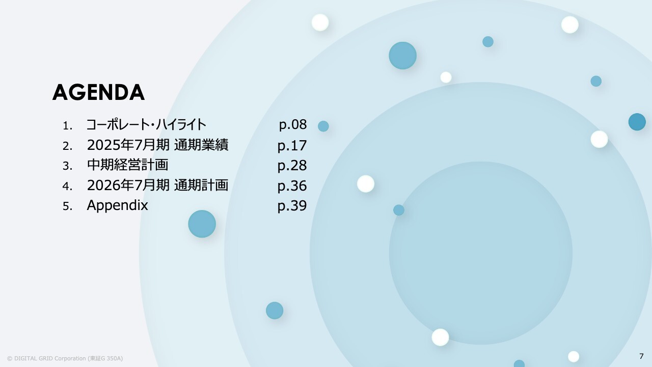 豊田祐介氏(以下、豊田):みなさま、こんにちは。デジタルグリッド代表取締役社長CEOの豊田です。本日は、2025年7月期の通期決算についてご説明します。どうぞよろしくお願いします。