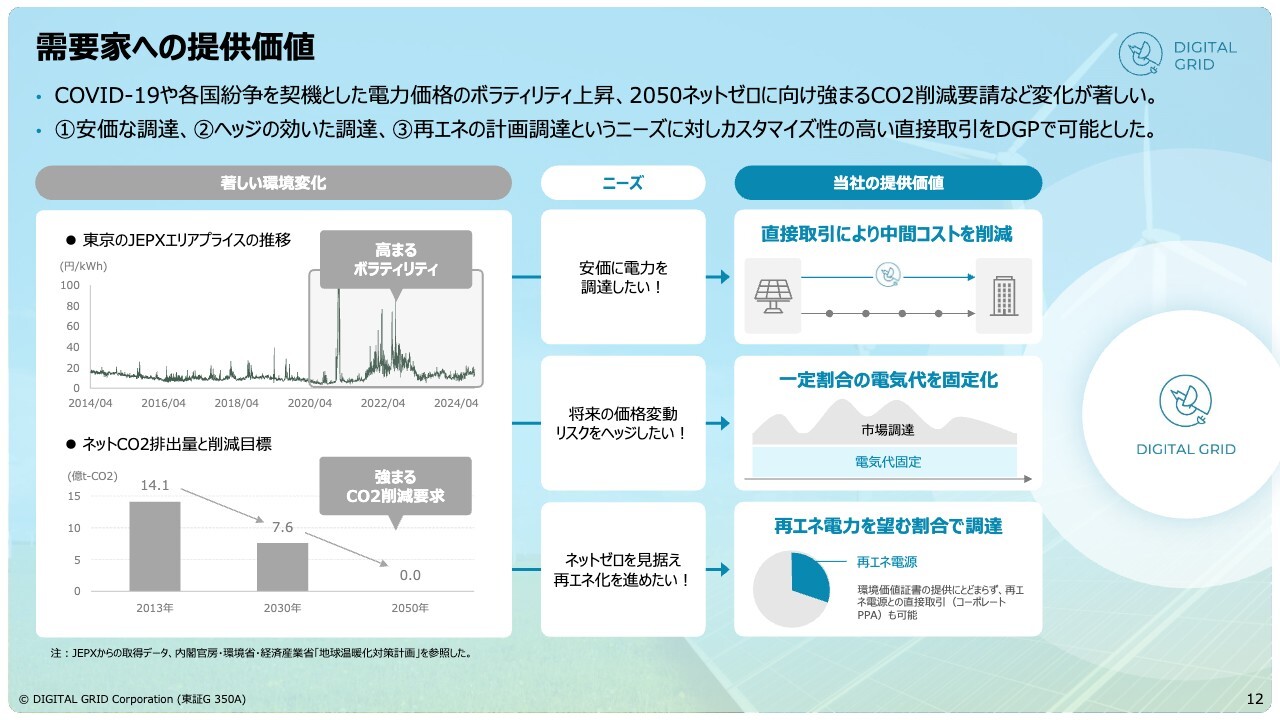 実際にお客さまにどのような価値を提供しているかについては、需要側と発電側で少し異なりますので、まず需要側についてご説明します。