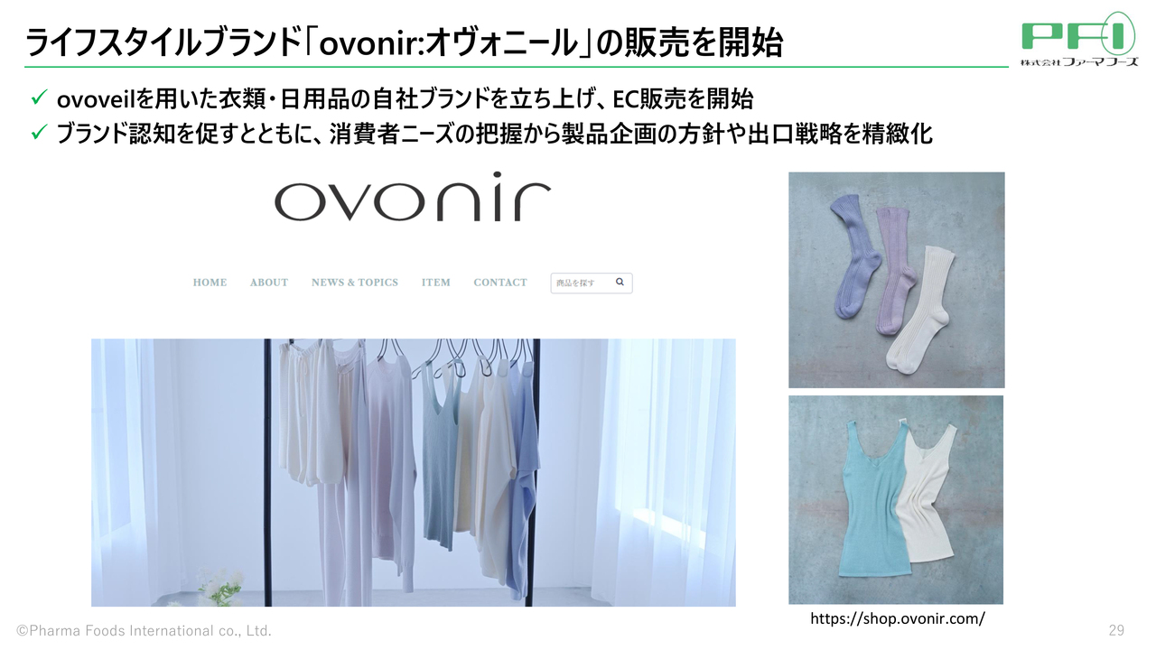 先ほど申し上げた大阪・関西万博の展示ブースでは、来場者の大多数である80パーセント以上が「ovoveil」製品への購入意向を示しており、閉幕後にSNS等を通じて販促活動を行い、売上を後押ししていきます。