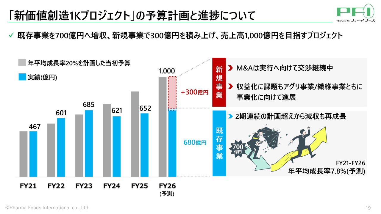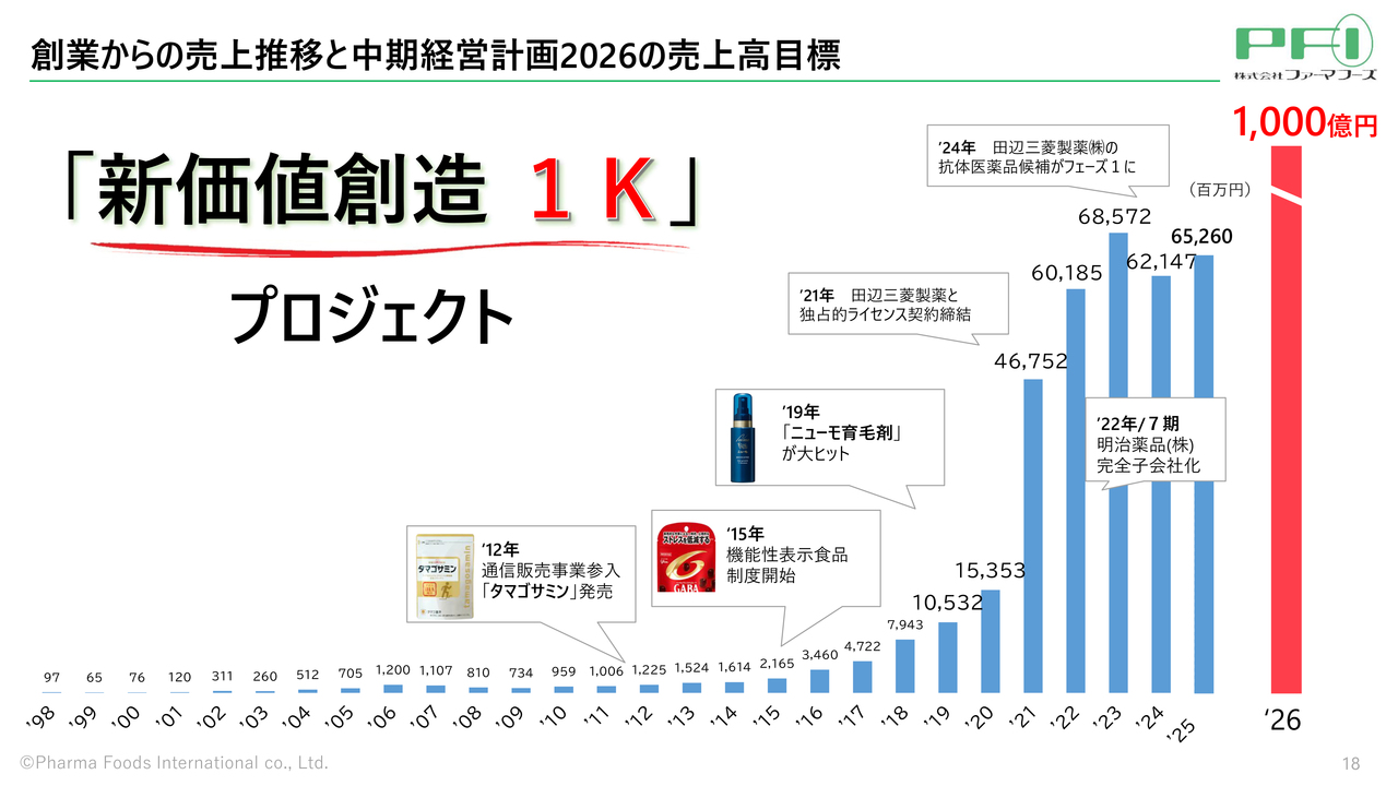 ここからは、「新価値創造1Kプロジェクト」の取り組みについてご説明します。私たちは2021年に「中期経営計画2026」を策定し、売上高1,000億円を目指した「新価値創造1Kプロジェクト」を掲げてきました。