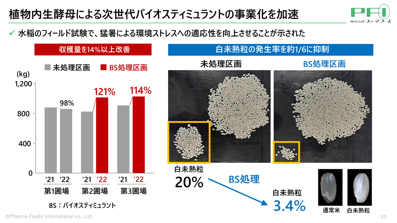 その一例として、私たちのバイオスティミュラントが貢献できると確信しています。また、エビデンスも揃ってきましたので、積極的に投資し、成長する価値があると考え、これからも推進していきます。