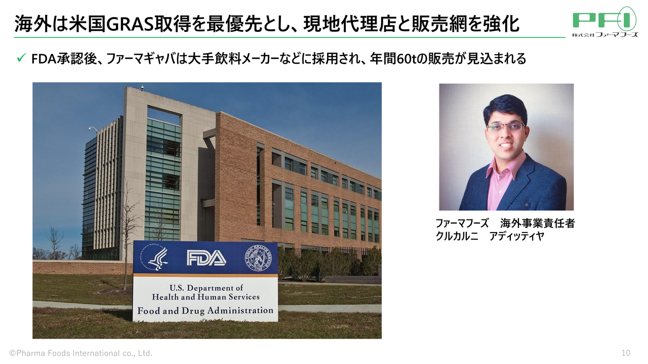 海外は米国GRAS取得を最優先とし、現地代理店と販売網を強化