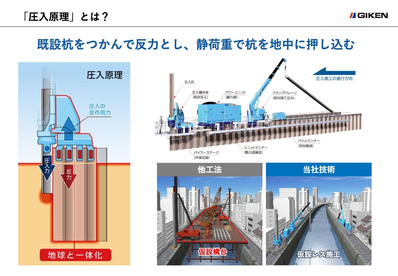 海外市場で、圧入工法を大きく広げるためには、本設構造物への採用実績の蓄積が不可欠です。