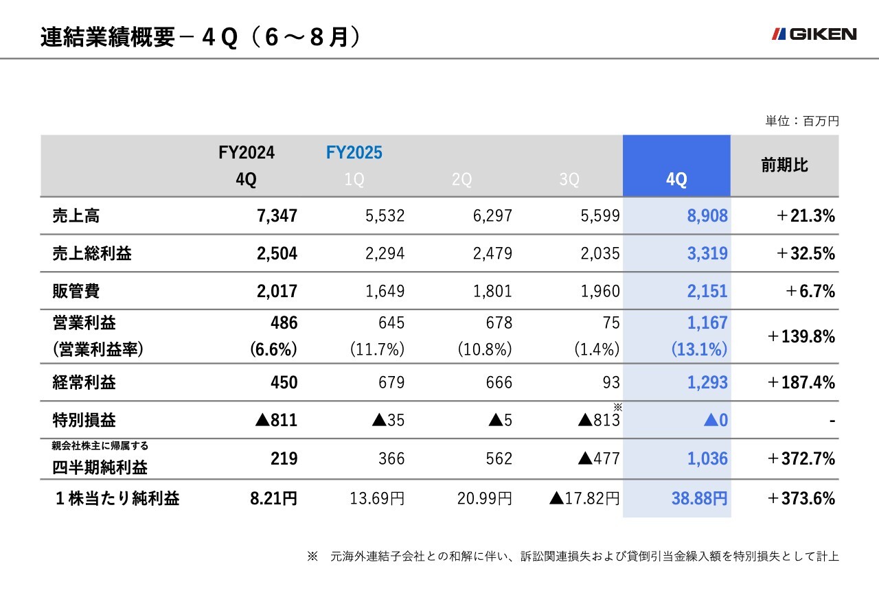 連結業績概要―4Q(6月~8月)