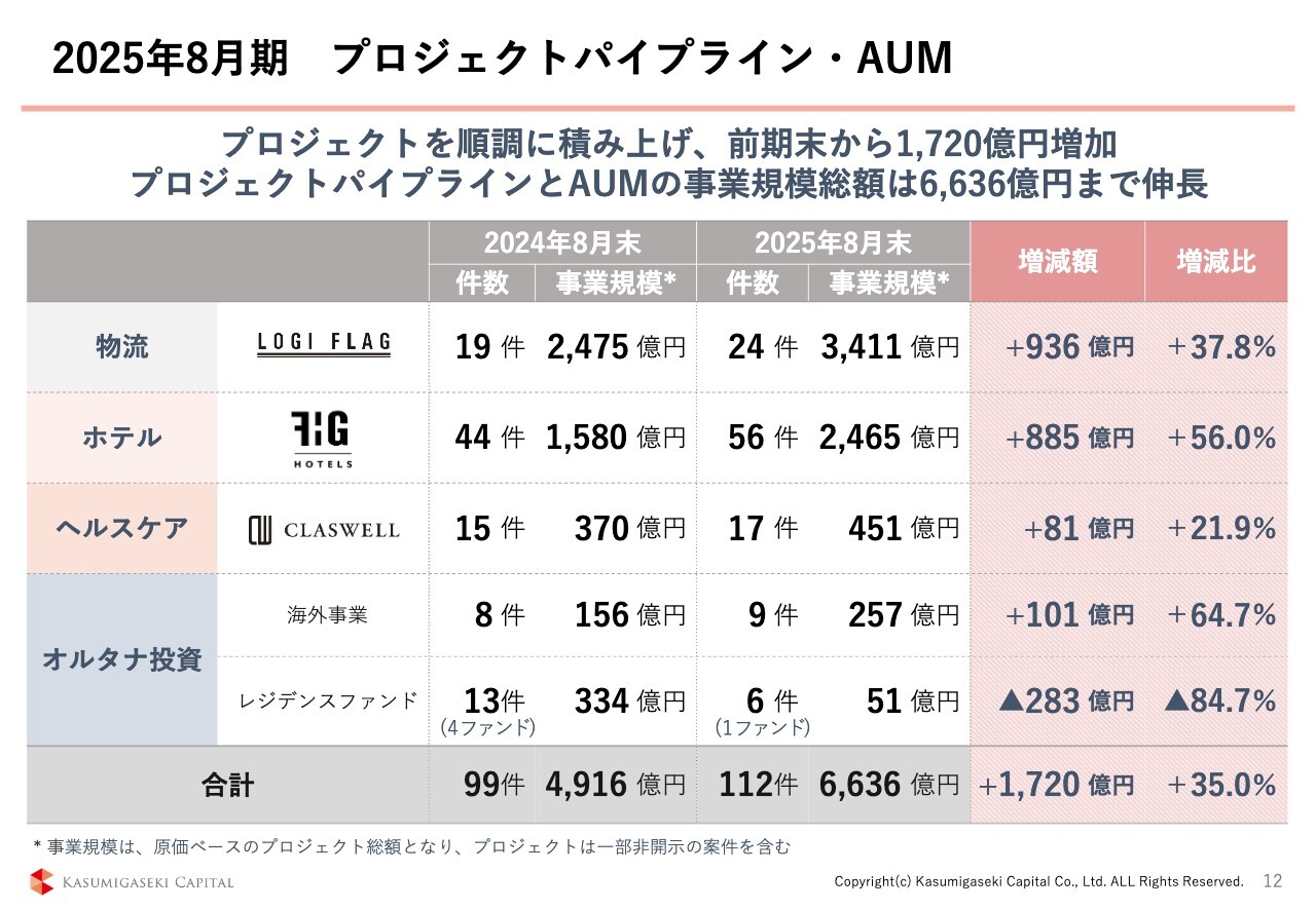 結果、AUMは約280億円減少しました。ただし、言い換えれば、約280億円の減少を差し引いたうえで、全体では約1,700億円増加しており、実質的なパイプラインは約2,000億円増加したとお考えください。