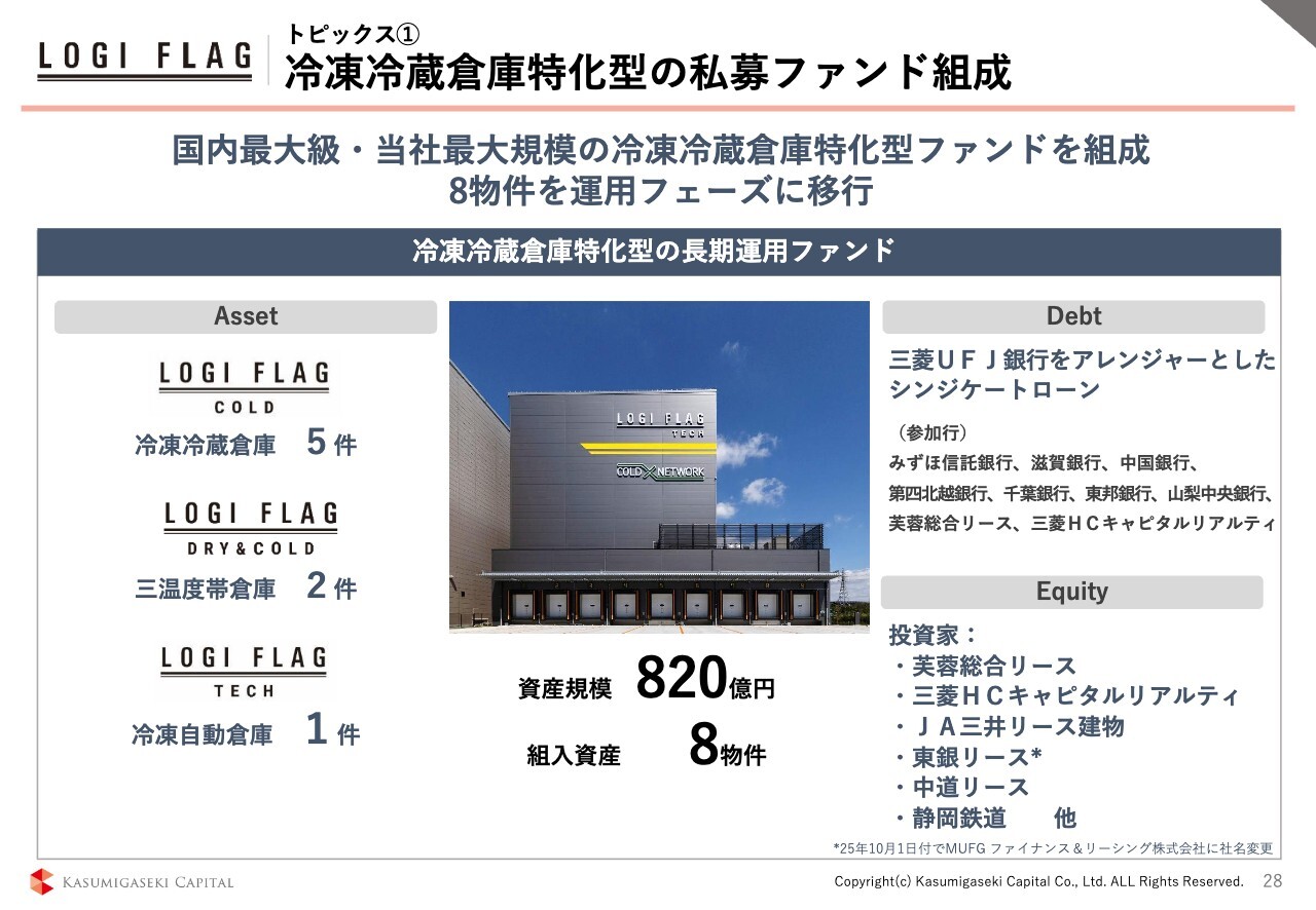 2025年8月期のトピックの1つとして、先ほども触れましたが、主力3事業すべてのアセットで中長期運用型の安定ファンドを組成しました。