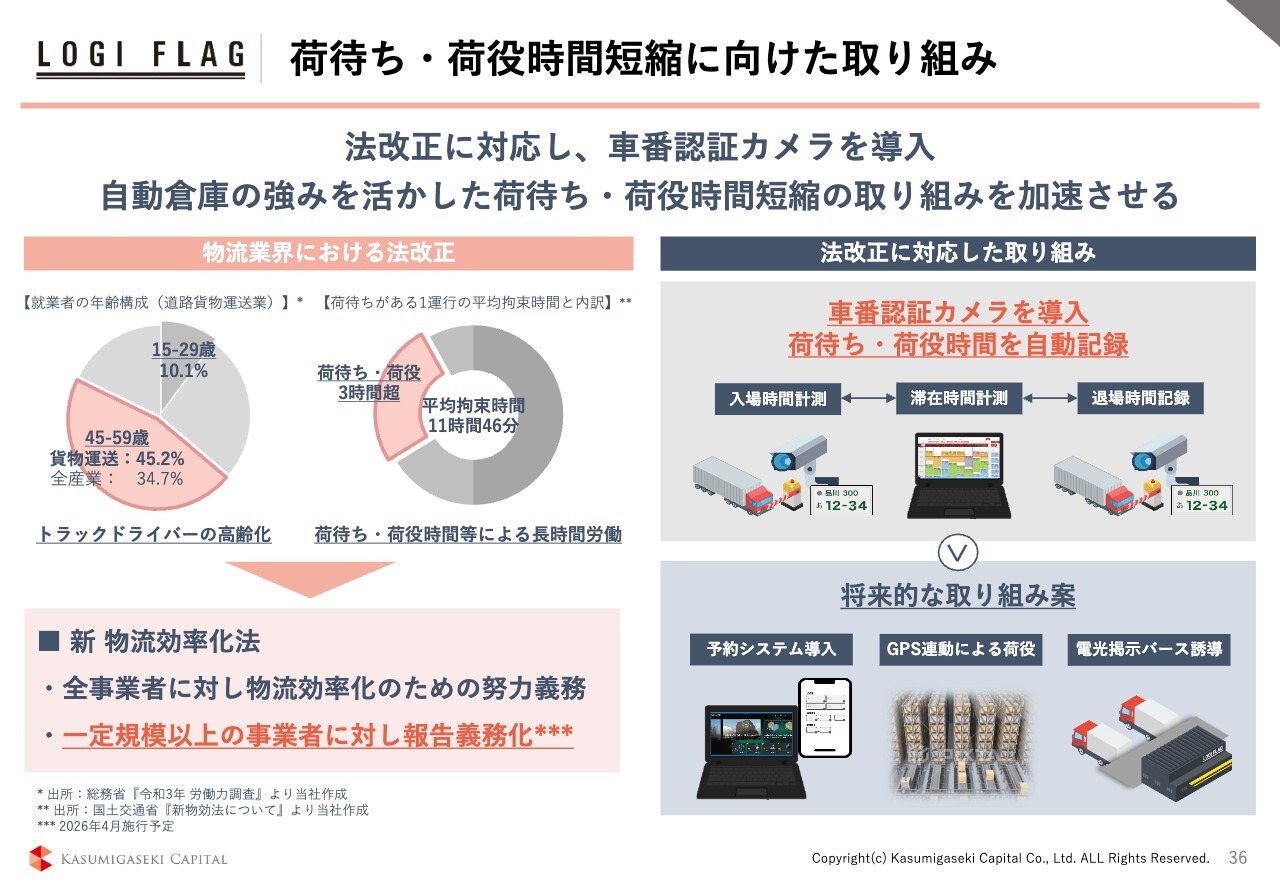 あるいは、入荷準備を開始するなど、連動させながら荷待ち時間や荷役時間を削減するような倉庫開発につなげていきたいと考えています。この物流効率化法の趣旨に則り、新しい事業を生み出していきたいと思います。