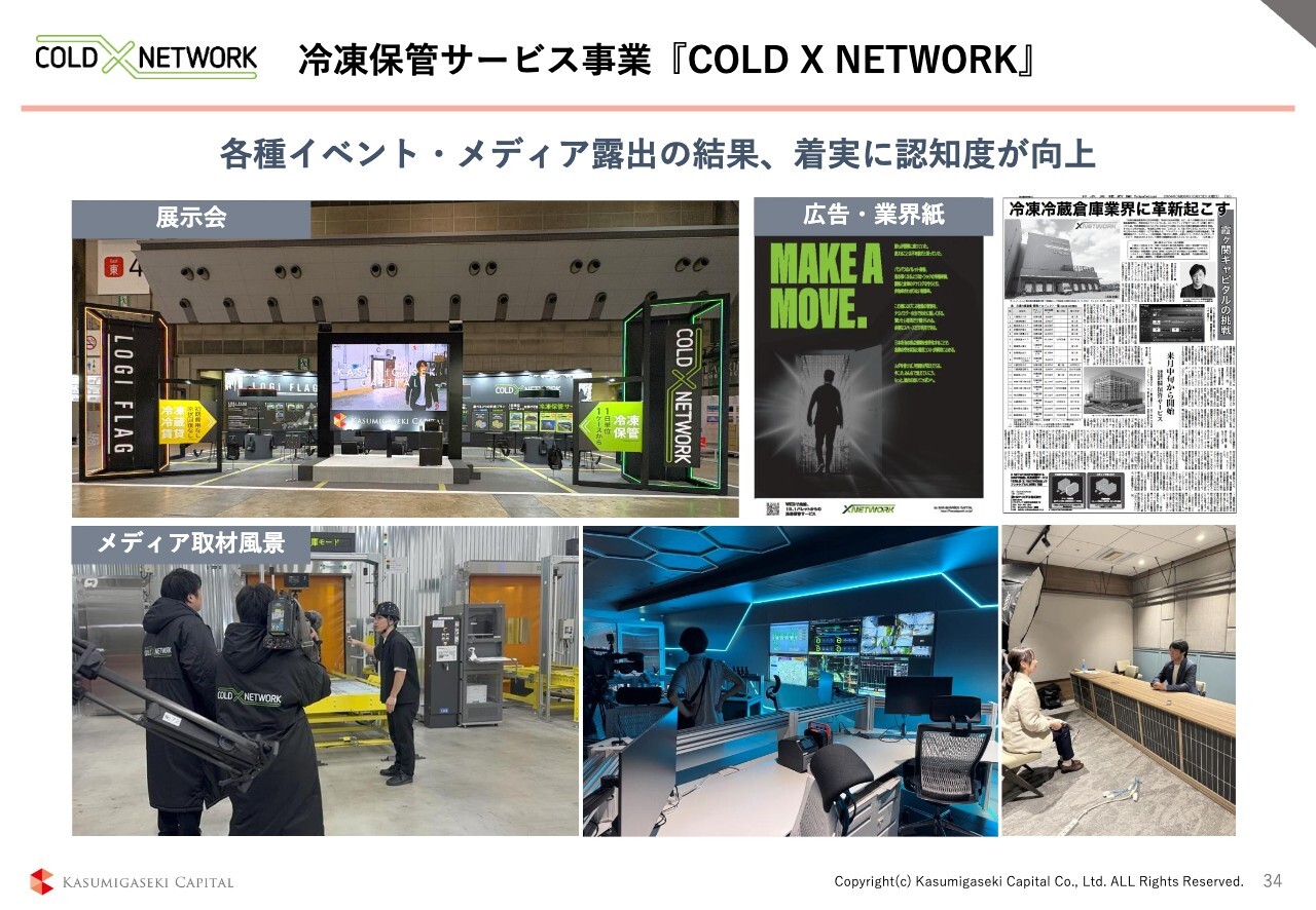 種まきの3つ目は、昨年10月頃から開始したオペレーションです。これまで倉庫を借りる場合、どうしても長期契約や大口契約が主流でしたが、ケース単位、パレット単位で利用できる冷凍保管サービスである「COLD X NETWORK(コールドクロスネットワーク)」を立ち上げて取り組んでいます。パレット単位、ケース単位、1日でも利用できるというビジネスです。