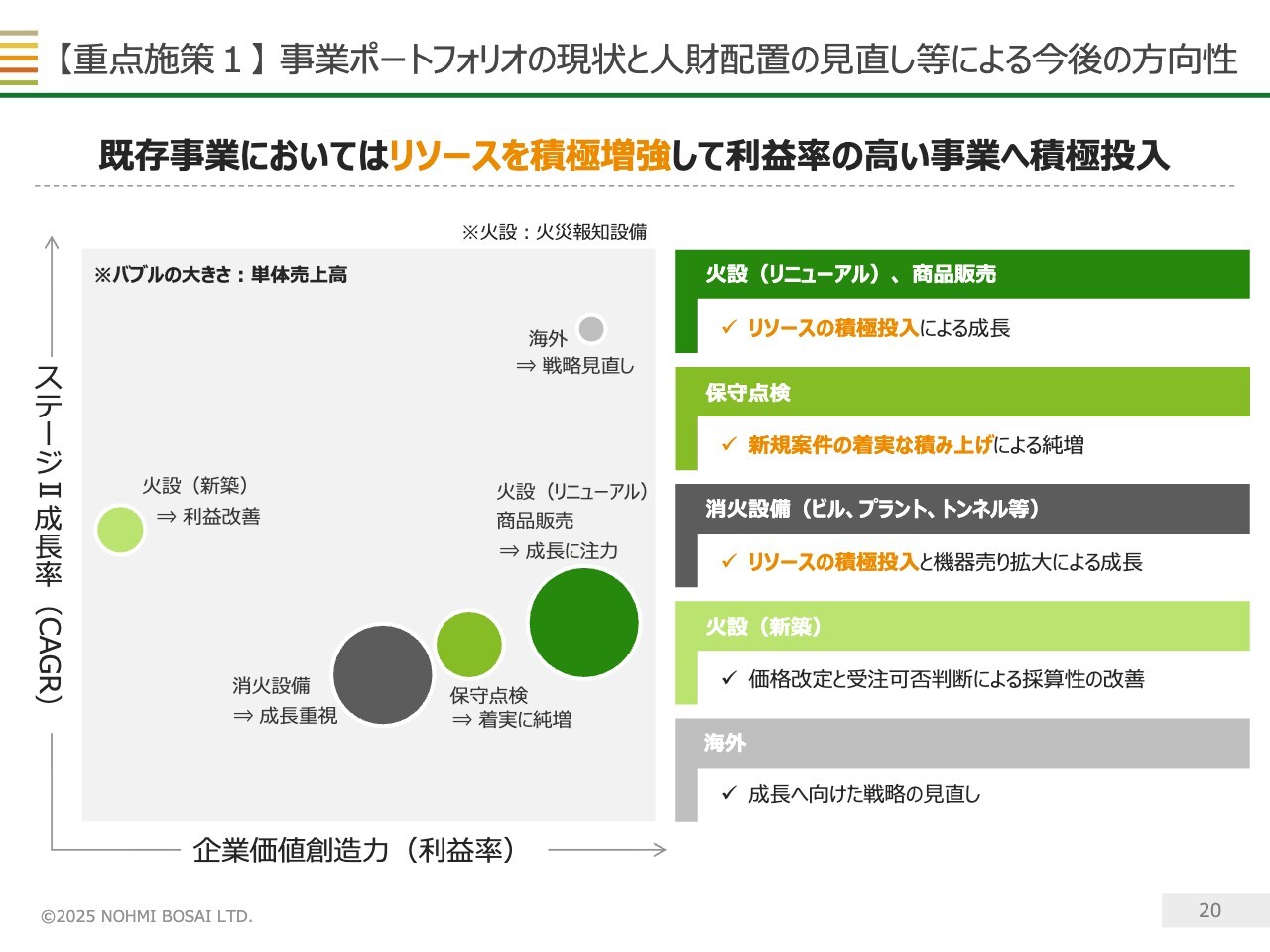 【重点施策1】事業ポートフォリオの現状と人財配置の見直し等による今後の方向性