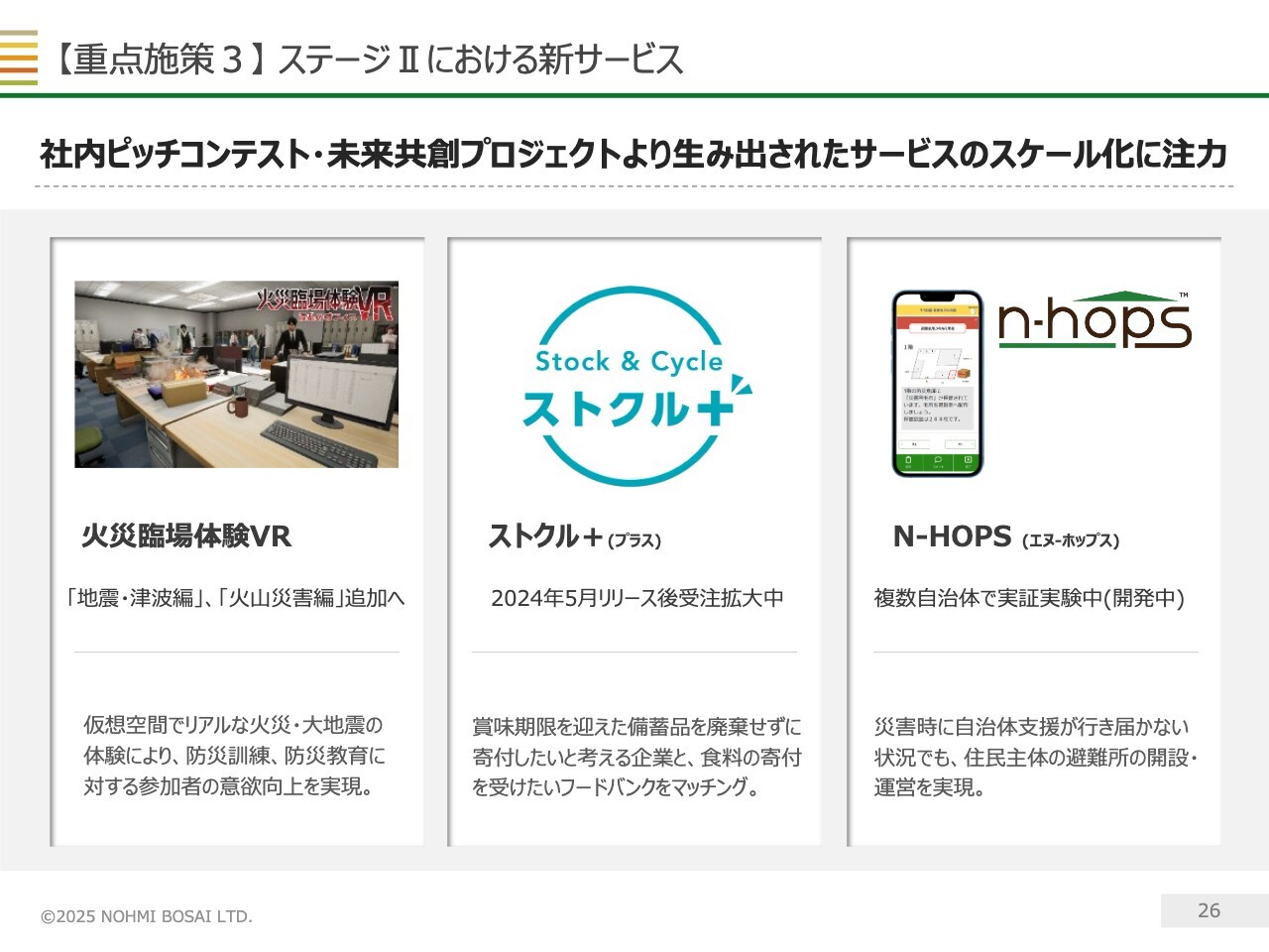 現在、当社が取り組んでいる新規事業の事例を示していますが、引き続きこのような新規事業の創出に努めるとともに、創出した事業のスケール化を目指していきます。