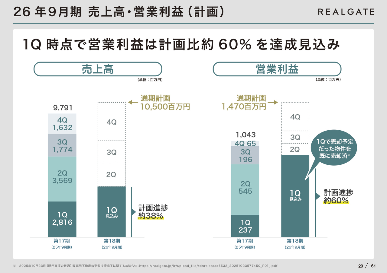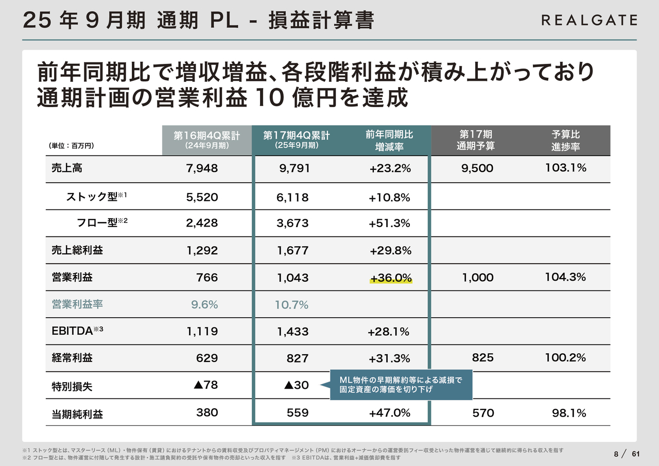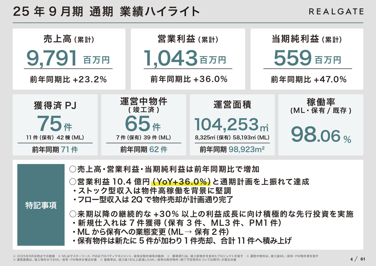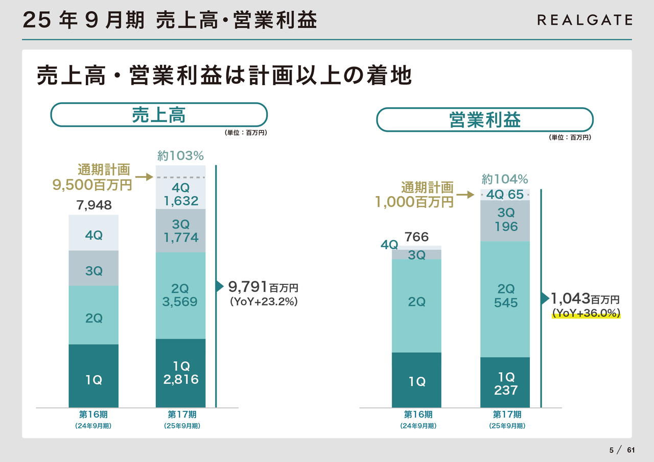 【QAあり】リアルゲイト、25年9月期は営業利益YoY+36%と増収増益 収益性の高い保有物件を増やし、来期は+40.9%を目指す