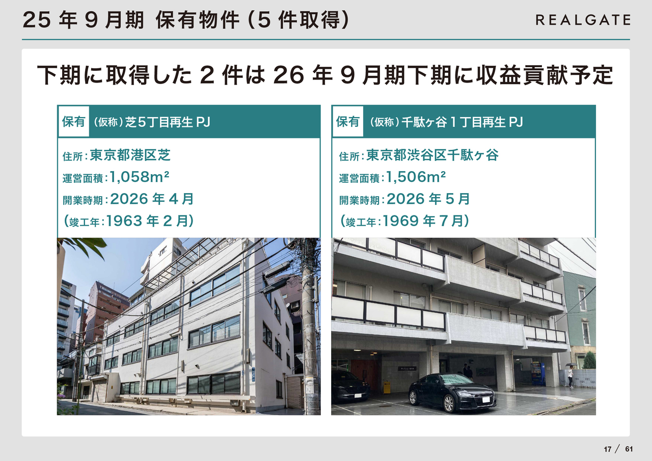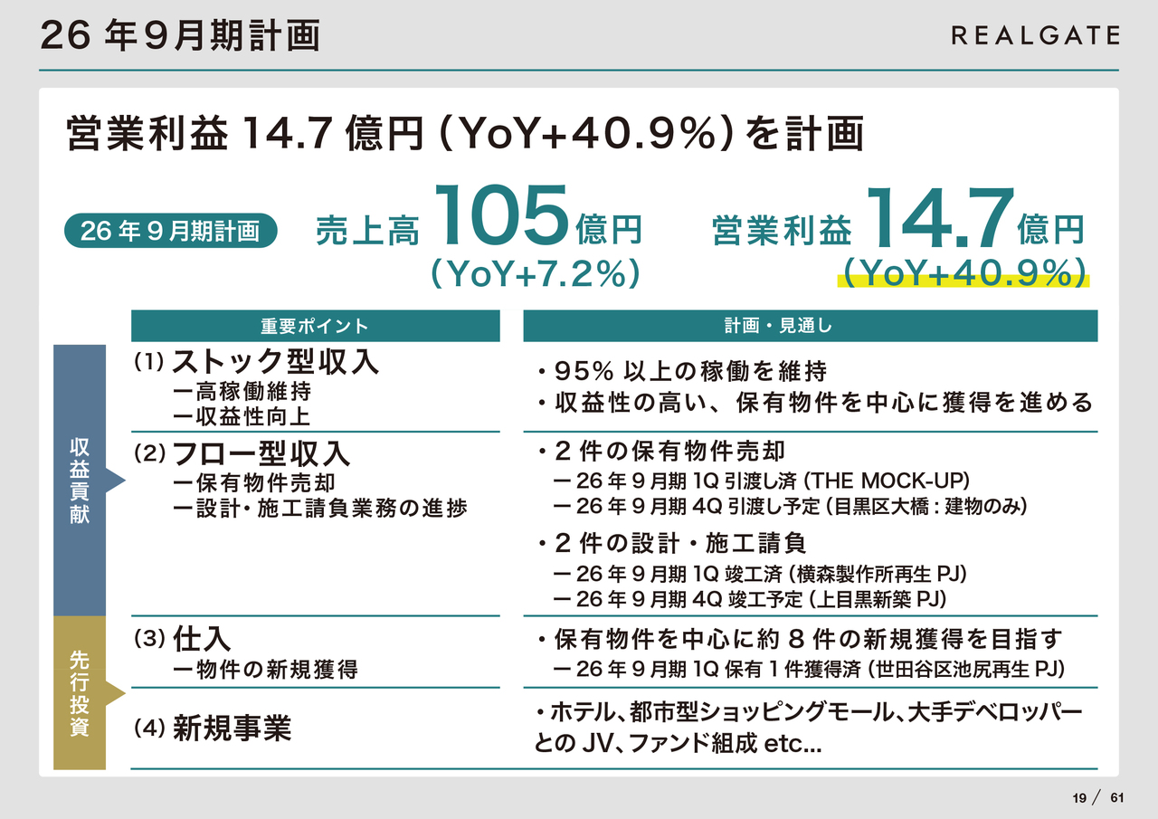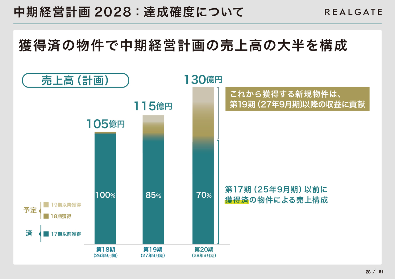 これから獲得する物件は、第19期(2027年9月期)以降の業績に貢献する予定です。そのため、極めて達成確度が高いと考えています。
