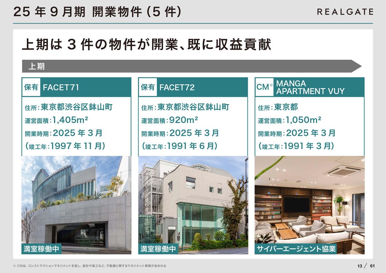 2025年9月期に開業した5物件のうち、上期にはこちらの3物件が開業しました。