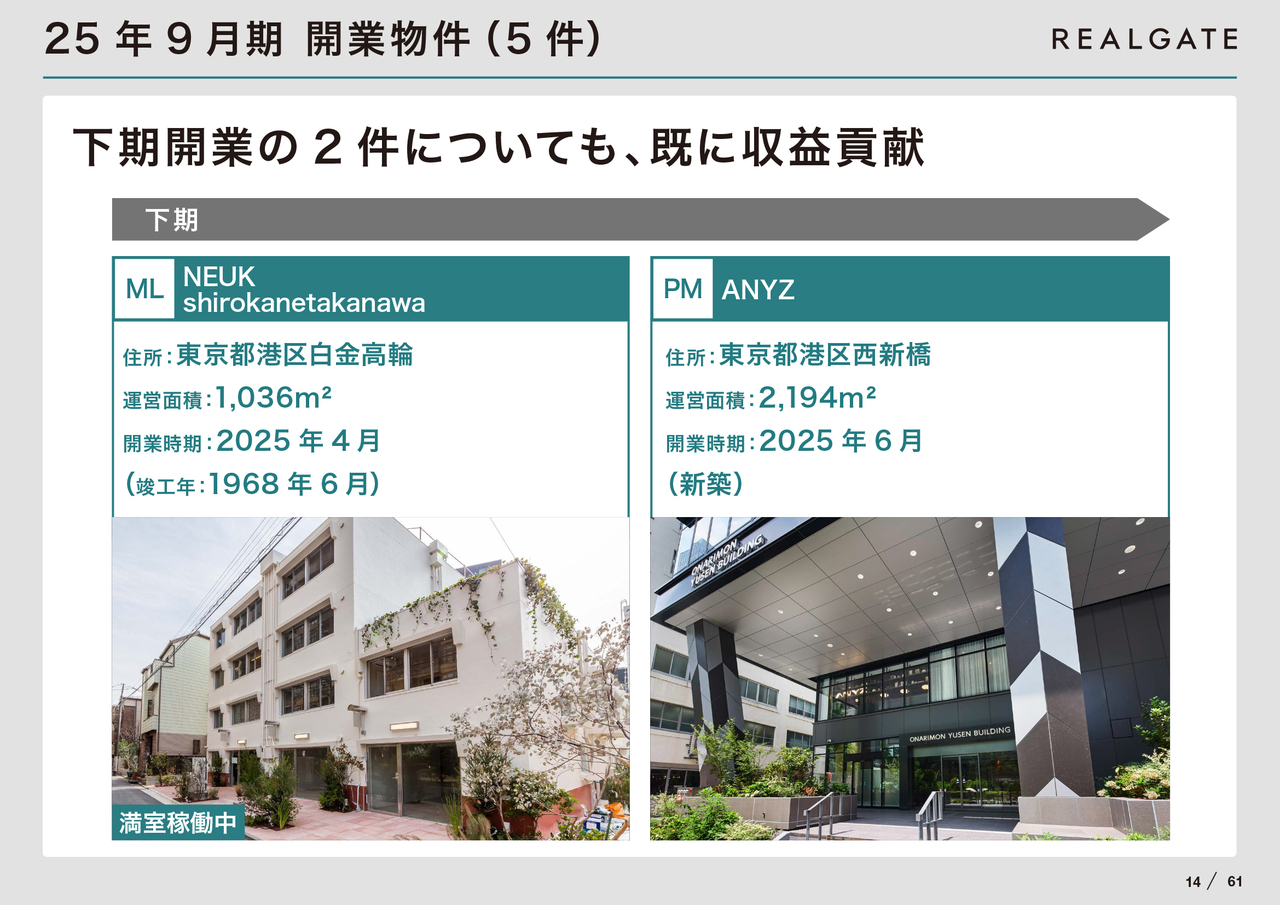 下期にはこちらの2物件が開業しました。いずれもすでに収益に貢献しています。