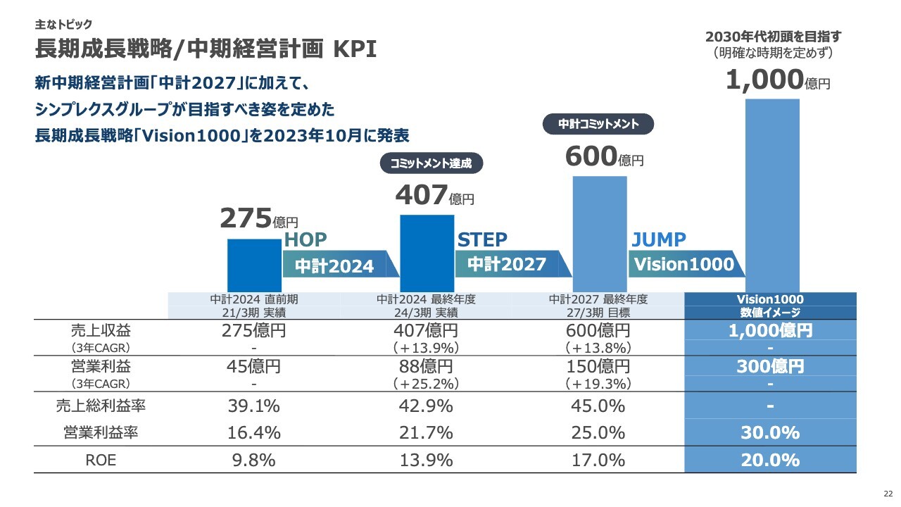 最後に、主なトピックとして掲げている「中計2027」および「Vision1000」の進捗状況についてお知らせします。