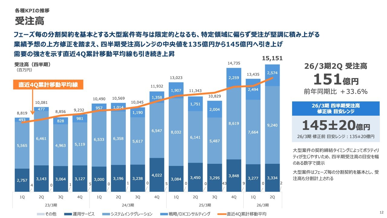 ユー・エス・エスも今回、実際に受注高として計上したのは要件定義フェーズだけで、金額としては5億円に満たない程度です。今回の151億円という受注高は、ほぼすべてが5億円未満の契約から幅広く積み上げられた結果と言えると思います。