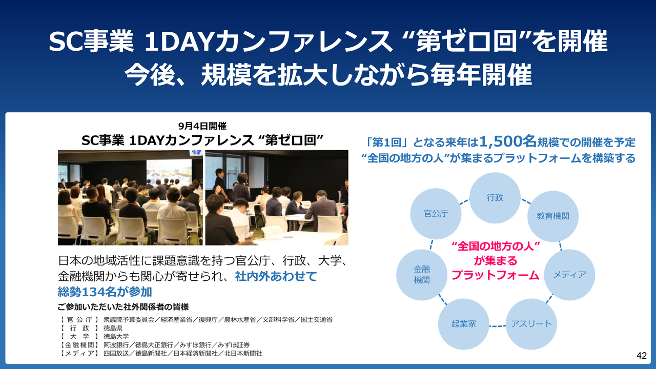 今年4月、当社はSC事業というかたちで地方創生事業を本格的に推進していく旨を発表しました。その中で、まず試験的に「SC事業 1DAYカンファレンス」を第ゼロ回として9月4日に開催しました。