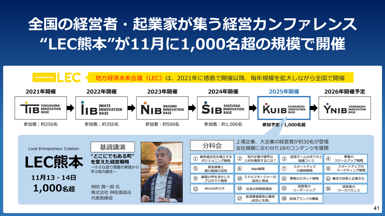 全国の経営者・起業家が集う経営カンファレンス“LEC熊本”が11月に1,000名超の規模で開催