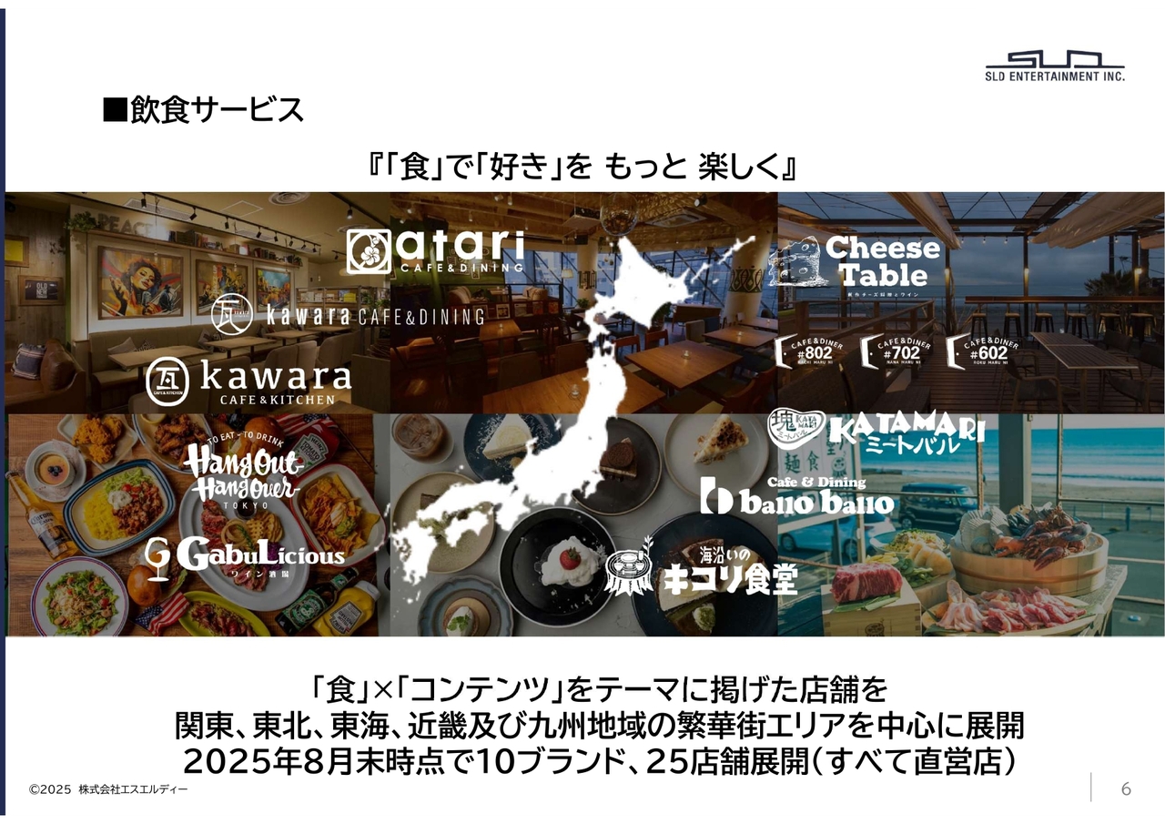続いて、当社のコンテンツ企画サービスについてご紹介します。私たちは、「食」と「IPコンテンツ」を掛け合わせることで、従来の飲食体験とは一線を画す、新しい価値の創出に取り組んでいます。たとえば、ポケモンカフェをはじめとしたコラボレーションカフェの運営では、ファンのみなさまに特別な時間と空間を提供し、高いご支持をいただいています。