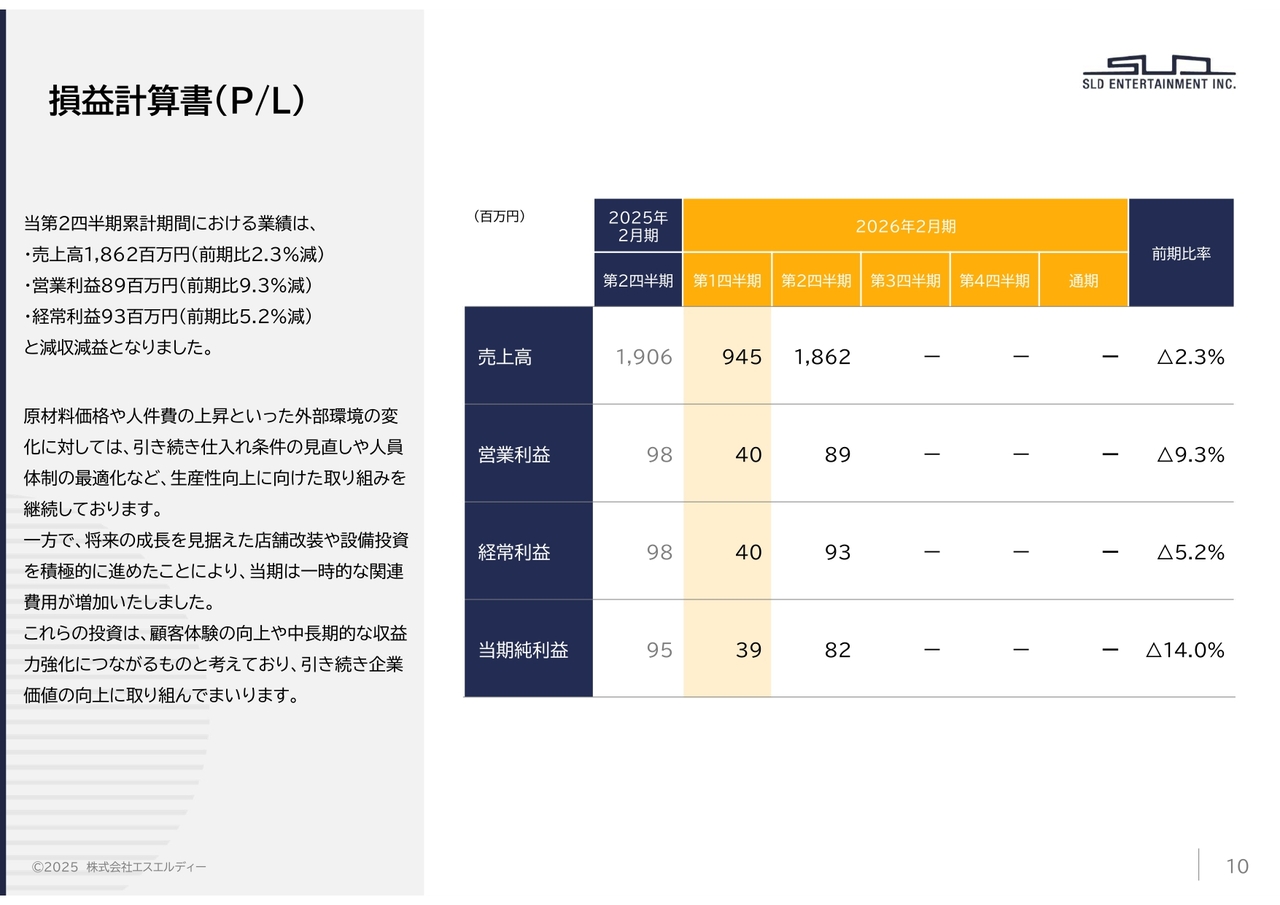 それでは、2026年2月期第2四半期の決算概要のご説明を行います。