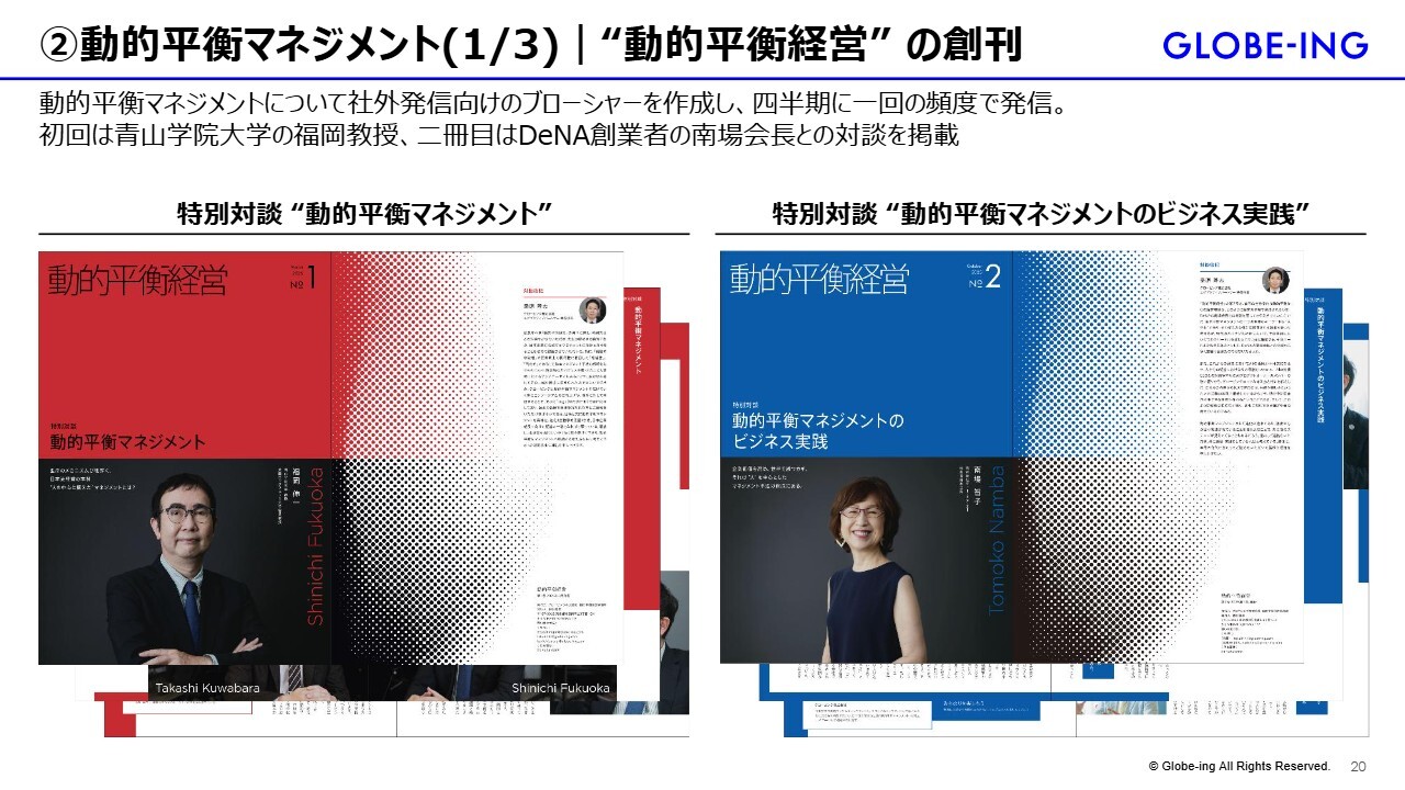 最後に、動的平衡マネジメントの動向についてご説明します。まずは、『動的平衡経営』という機関紙を発刊しています。