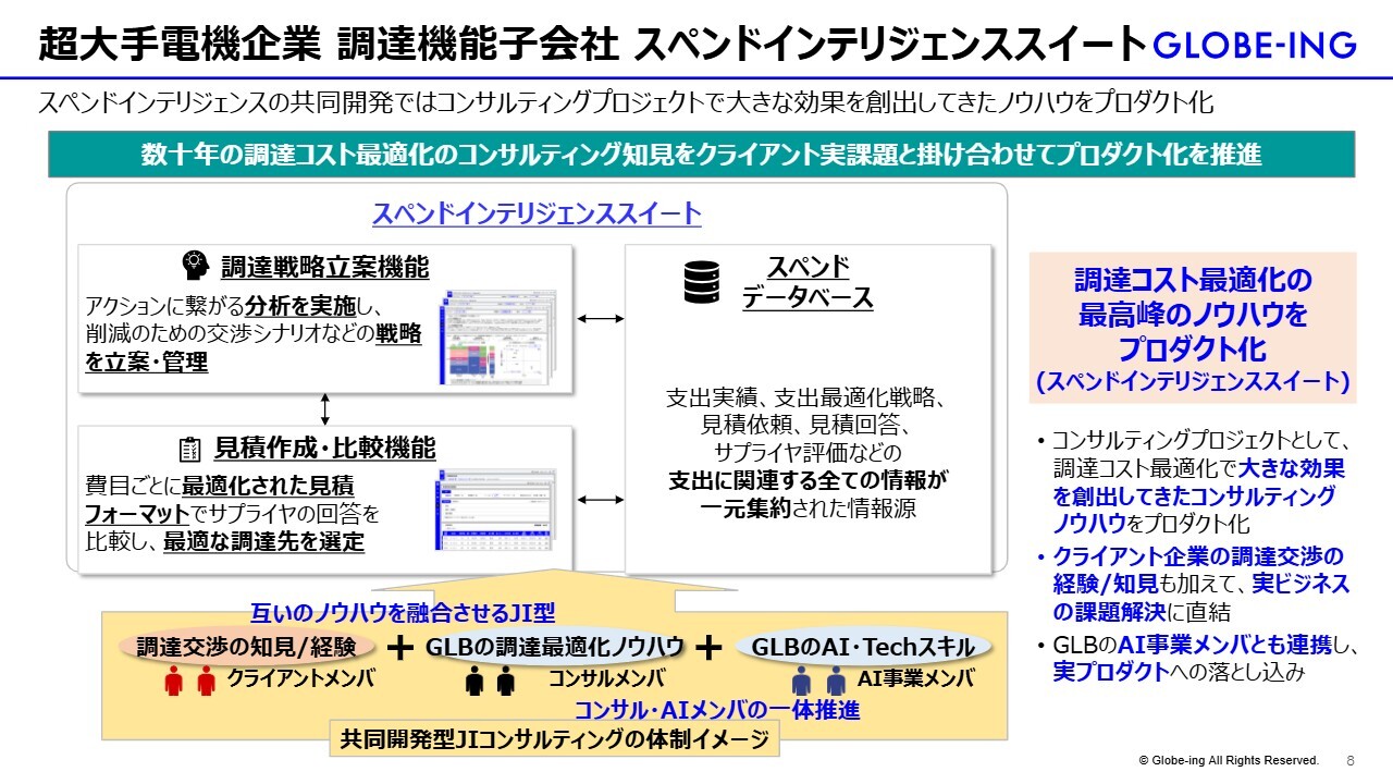 クライアント企業が持つ調達交渉の経験や知見と、弊社コンサルタントが数十年にわたり調達コスト最適化のプロジェクトで培ったノウハウを掛け合わせています。さらに、弊社のAIエンジニアのスキルを活用し、これらを実際のプロダクトに落とし込む作業も進めています。