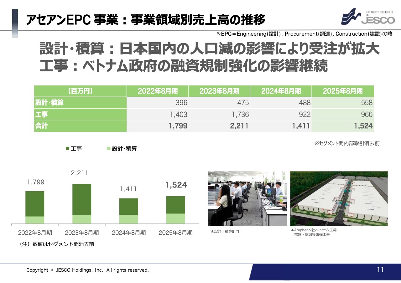 アセアンEPC事業です。設計・積算部門においては日本企業からの業務を受注しており、日本国内の人口減少に伴い受注が拡大、毎期順調に伸びてきています。