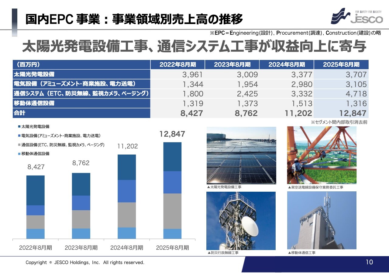 セグメント別の主な要因としては、国内EPC事業においては、再生可能エネルギー分野、無線通信システム関連設備において受注が拡大しました。