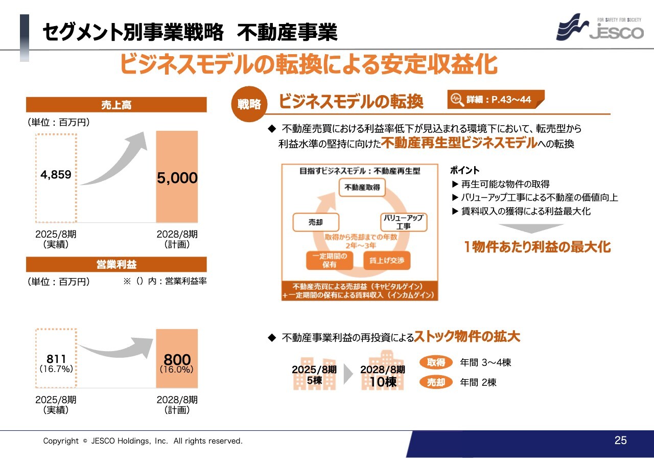 不動産事業です。基本的には安定収益化ということで、大きな拡大は考えていません。売上規模で50億円、営業利益も8億円程度を安定的に確保していきたいと考えています。