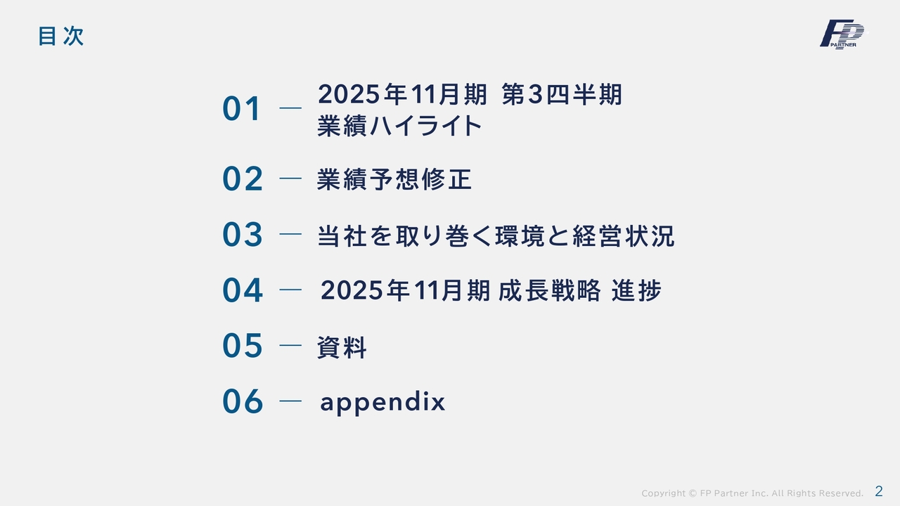 黒木勉氏(以下、黒木):本日はお忙しい中、株式会社FPパートナーの2025年11月期第3四半期決算説明会にご来場いただき、誠にありがとうございます。