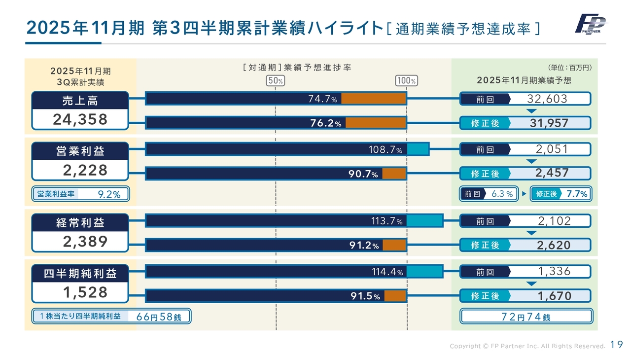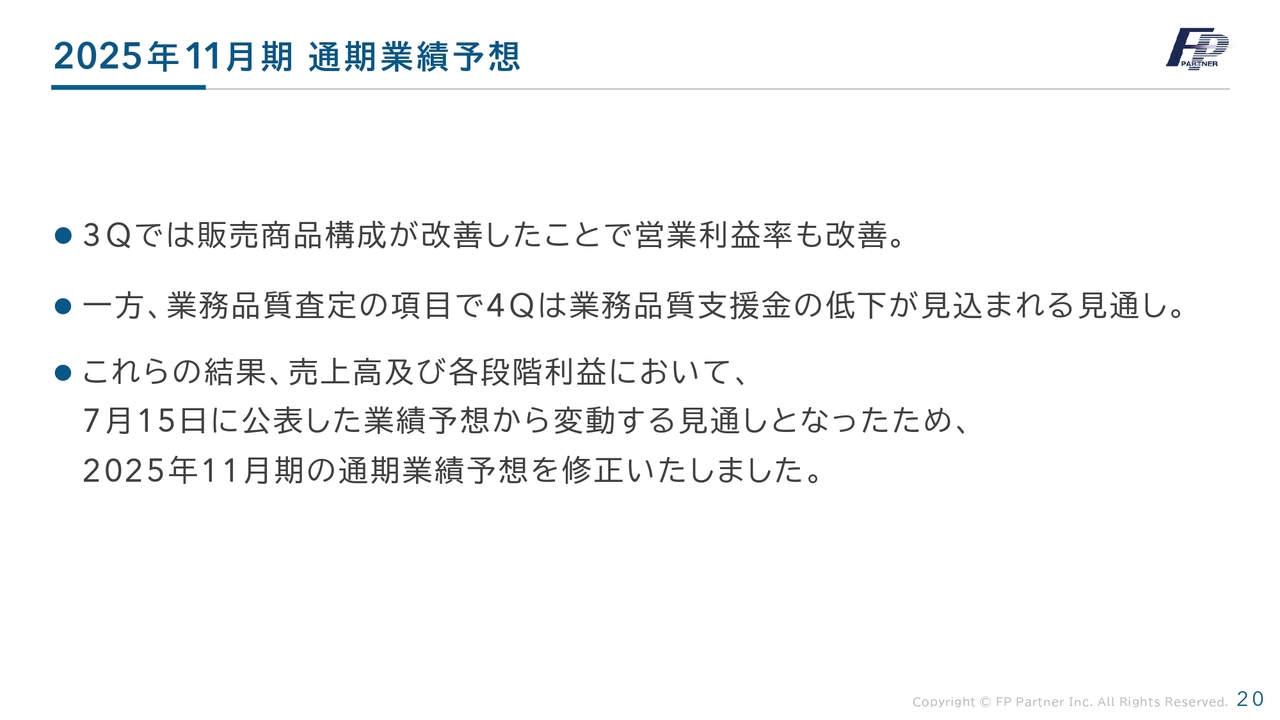 【QAあり】FPパートナー、3Qの業績回復と今後の見通しを踏まえ、利益面に関する通期業績予想を上方修正
