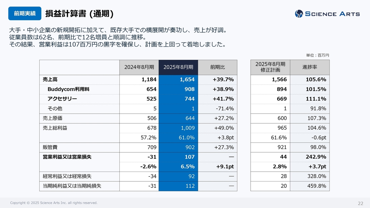 平岡秀一氏(以下、平岡):こんにちは。サイエンスアーツ代表取締役社長の平岡です。2025年8月期の通期決算についてご説明します。
