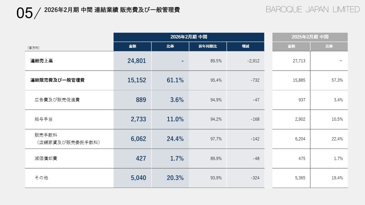 05/2026年2月期 中間 連結業績販売費及び一般管理費