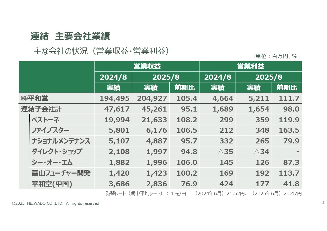 食品製造業を展開しているベストーネに関しては、平和堂単体の食品事業が好調に推移しており、それに伴いベストーネも大幅な増収を達成し、さらに増益となっています。