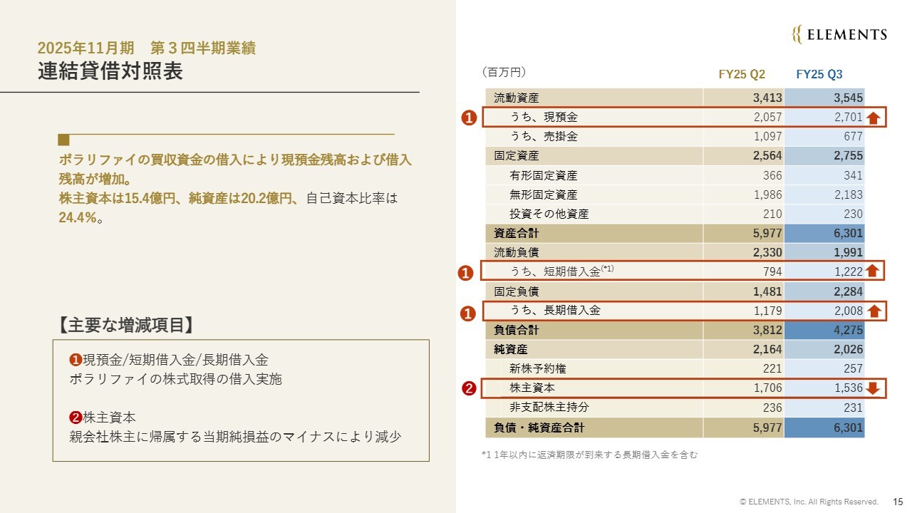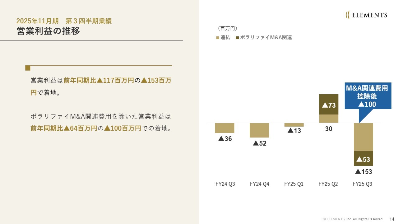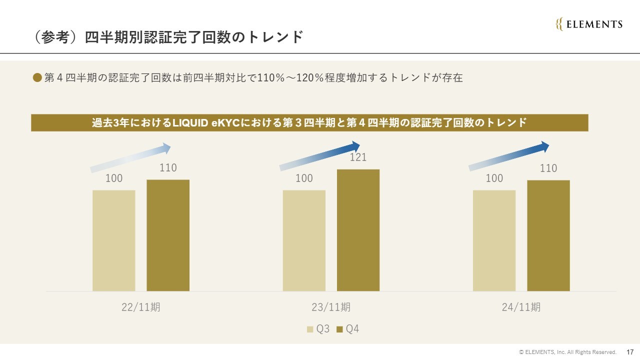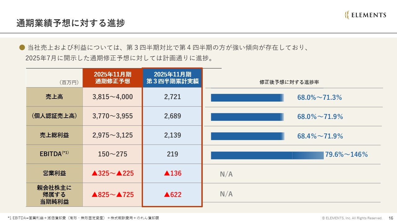 以上をもちまして、株式会社ELEMENTS、2025年度11月期第3四半期決算説明を終了します。ご清聴ありがとうございました。